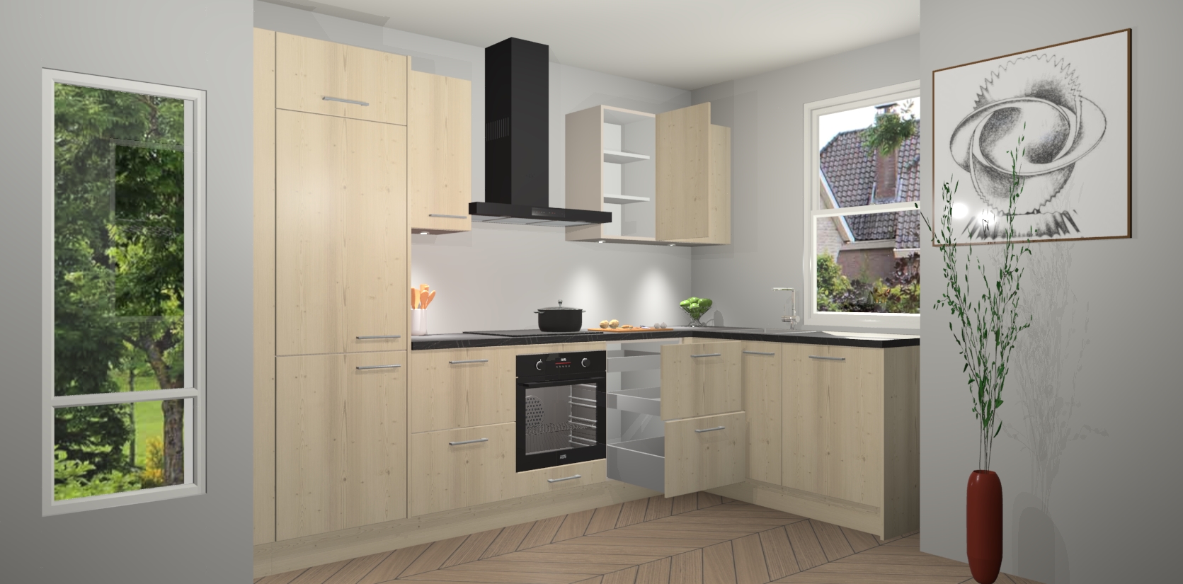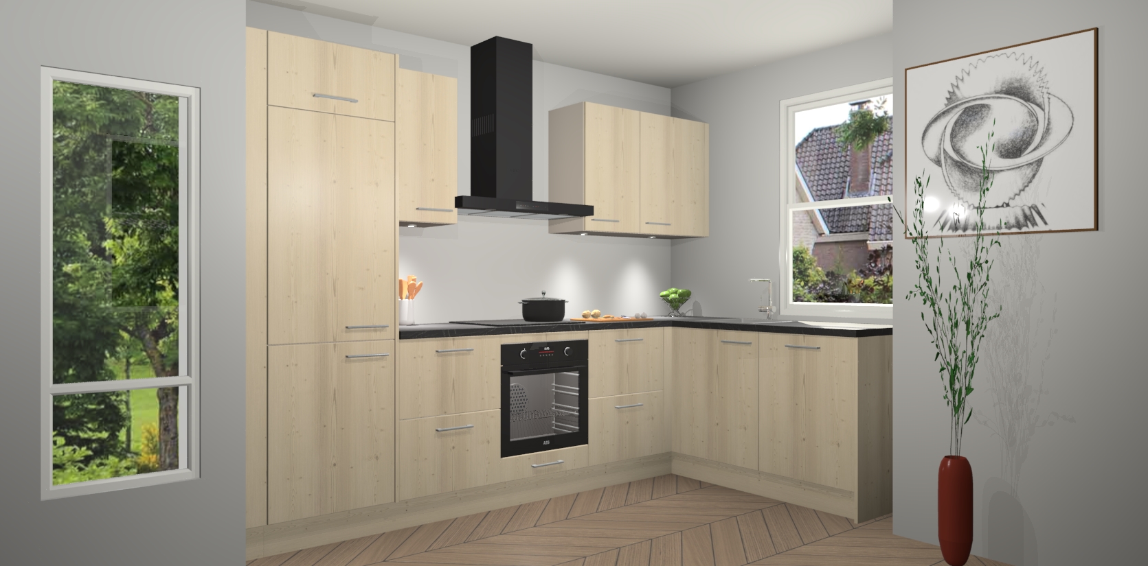 De Vuren keuken Geneve is precies wat u nodig heeft als u op zoek bent naar modern design, versmolten met tijdloze schoonheid. De strakke afwerking voegt klasse toe terwijl het toch een uitnodigende sfeer behoudt; zeker om zowel gasten als uzelf te inspireren om in stijl te gaan koken! En nog beter, het zal uw budget niet breken - dus waarom wachten? Met de Vuren keuken Geneve bent u verzekerd van kwaliteit zonder in te leveren op de prijs!