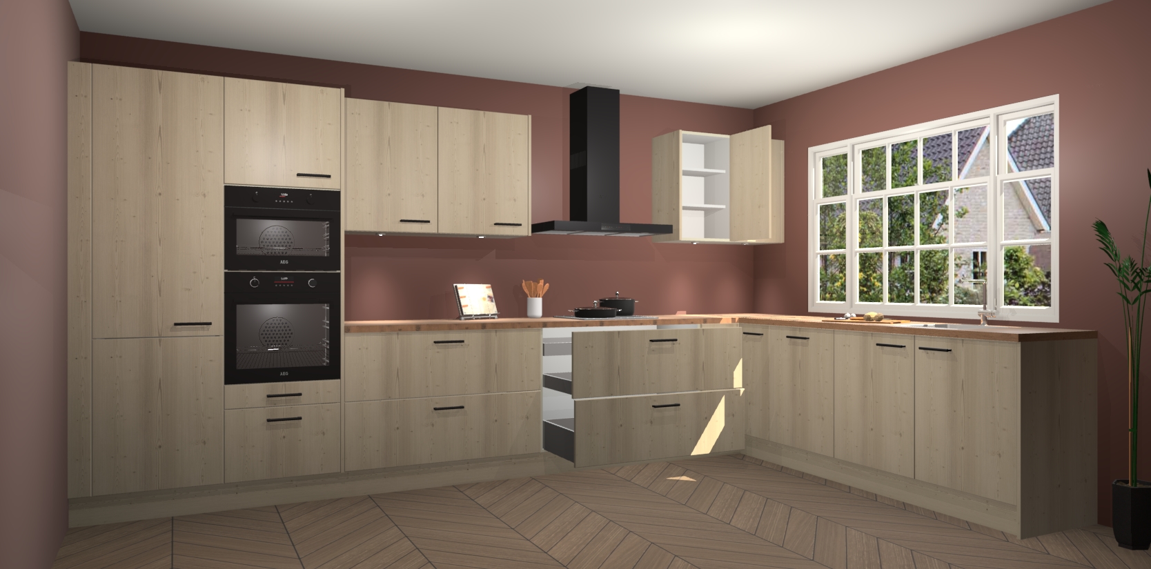 Kom dichtbij de perfecte keuken van uw dromen met de vuren keuken Graz. Met een prachtige houtlook en eigentijds ontwerp, straalt deze keuken warmte en sfeer uit. Of u nu liefhebber bent van traditionele of moderne stijlen, er is genoeg ruimte om aan al uw behoeften te voldoen.