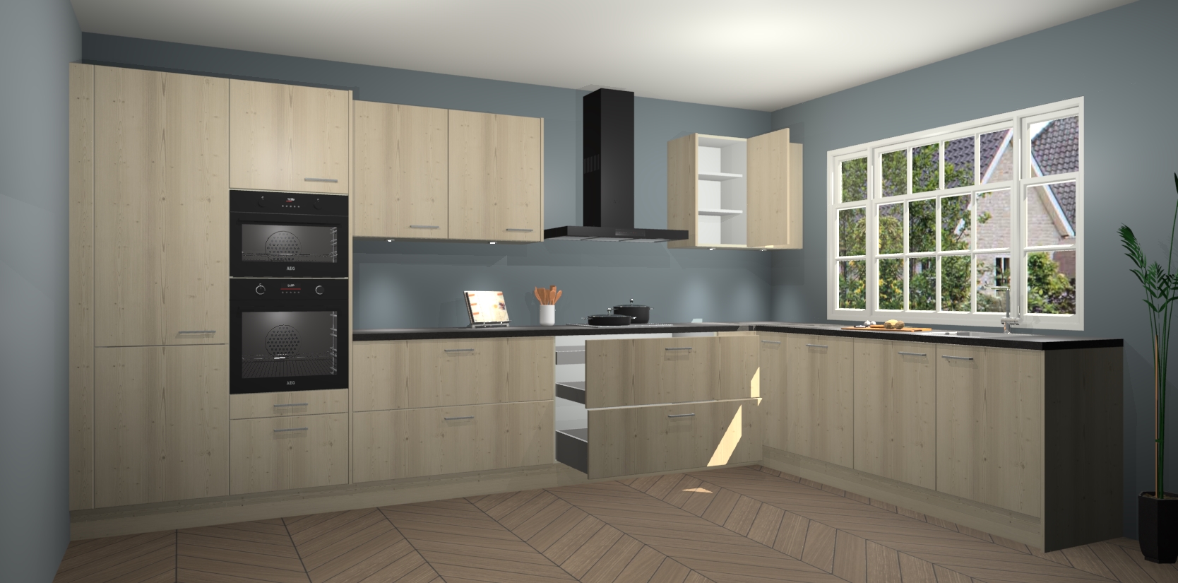 Inclusief plinten, stelpoten en werkblad