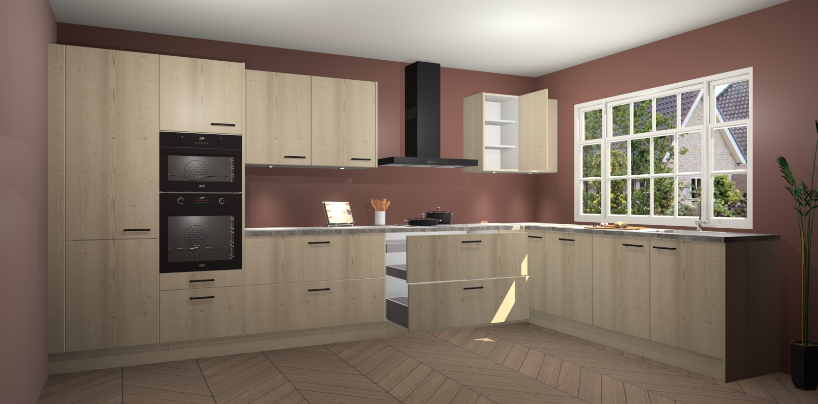 Kom dichtbij de perfecte keuken van uw dromen met de vuren keuken Graz. Met een prachtige houtlook en eigentijds ontwerp, straalt deze keuken warmte en sfeer uit. Of u nu liefhebber bent van traditionele of moderne stijlen, er is genoeg ruimte om aan al uw behoeften te voldoen.