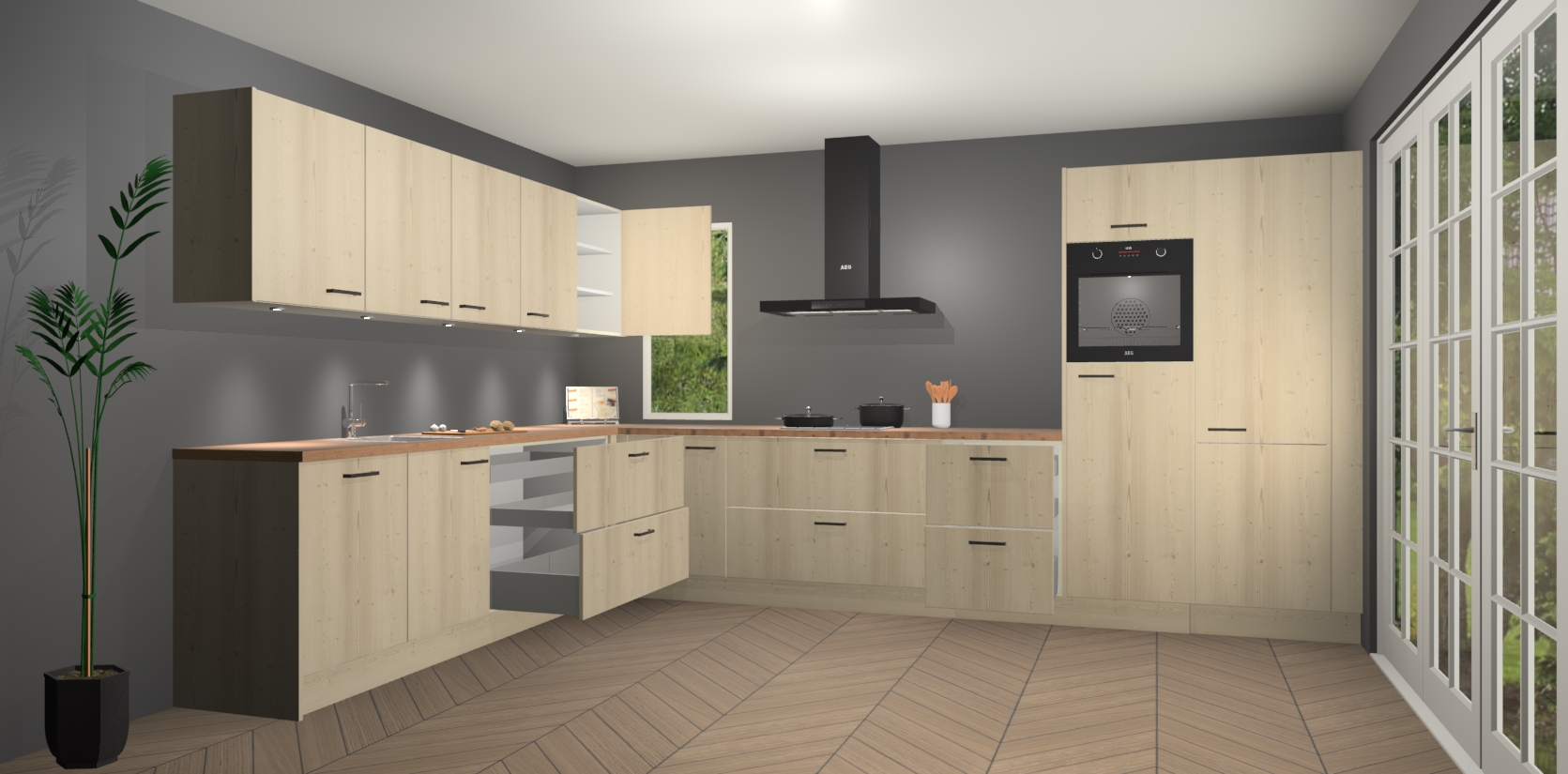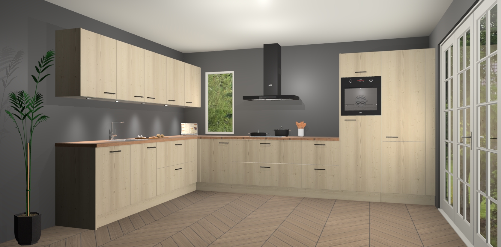 Kom dichtbij de perfecte keuken van uw dromen met de vuren keuken Harare. Met een prachtige houtlook en eigentijds ontwerp, straalt deze keuken warmte en sfeer uit. Of u nu liefhebber bent van traditionele of moderne stijlen, er is genoeg ruimte om aan al uw behoeften te voldoen.