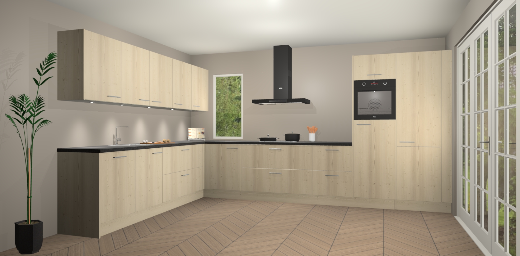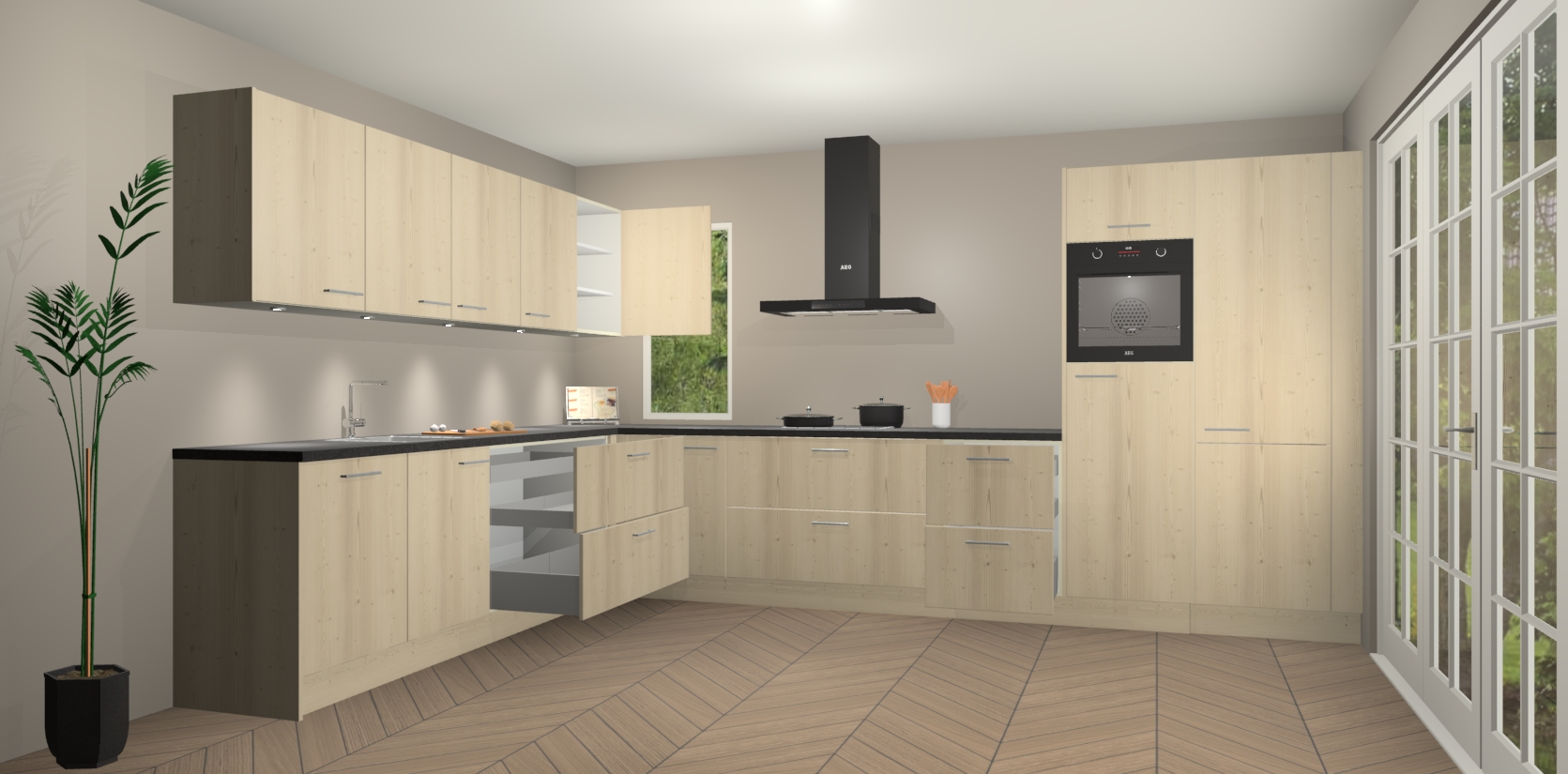 Kom dichtbij de perfecte keuken van uw dromen met de vuren keuken Harare. Met een prachtige houtlook en eigentijds ontwerp, straalt deze keuken warmte en sfeer uit. Of u nu liefhebber bent van traditionele of moderne stijlen, er is genoeg ruimte om aan al uw behoeften te voldoen.