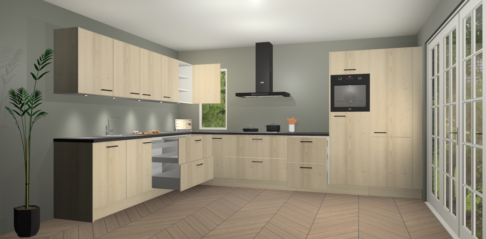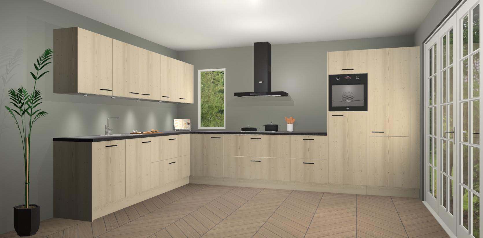 Kom dichtbij de perfecte keuken van uw dromen met de vuren keuken Harare. Met een prachtige houtlook en eigentijds ontwerp, straalt deze keuken warmte en sfeer uit. Of u nu liefhebber bent van traditionele of moderne stijlen, er is genoeg ruimte om aan al uw behoeften te voldoen.