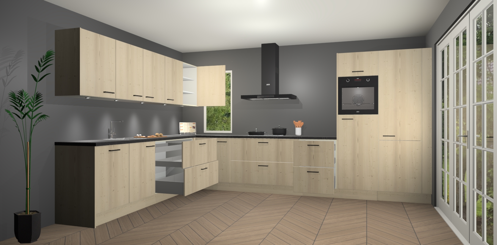 Inclusief plinten, stelpoten en werkblad