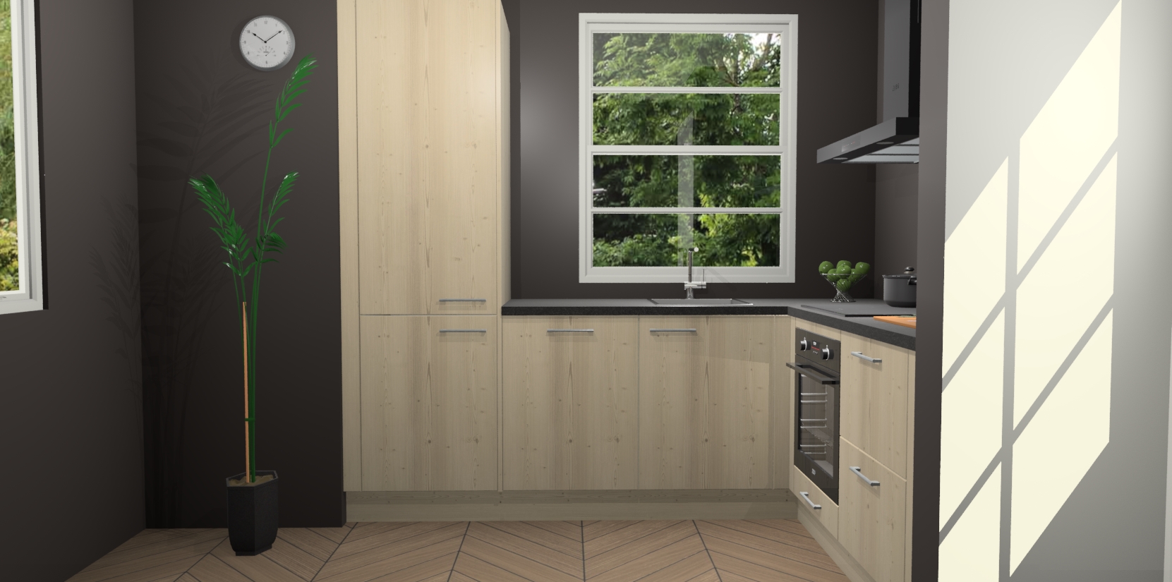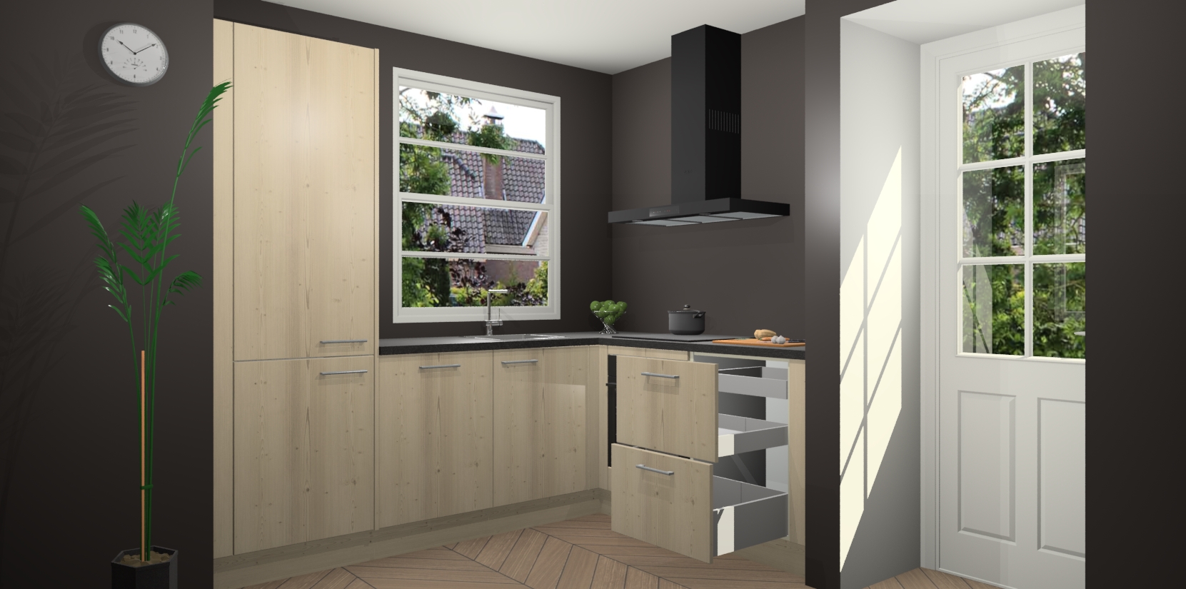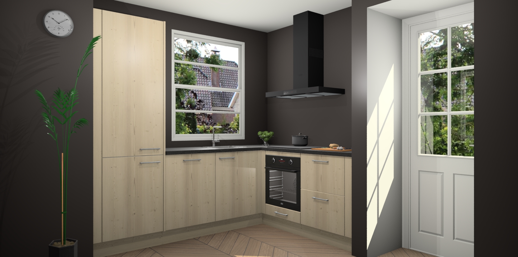 Wilt u een echte aanwinst voor uw keuken, maar bent u op zoek naar iets specialers dan de standaardkeukens? Kies dan voor de Vuren keuken Harbin! Dit prachtige hoekkeukenontwerp geeft u alle ruimte om optimaal te genieten van heerlijk koken. Het uitmuntende afwerkingsniveau, de fraaie houtstructuur en de sfeervolle zwarte grepen maken van de Vuren keuken Harbin de perfecte keuze voor zowel enthousiaste thuiskoks als design-minded interieurliefhebbers.