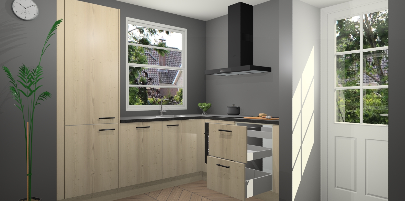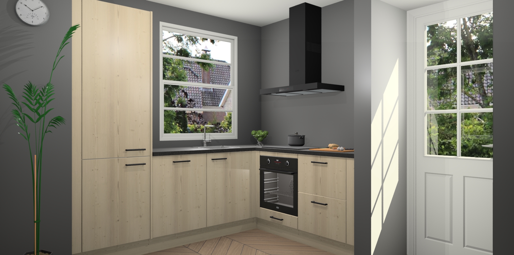Wilt u een echte aanwinst voor uw keuken, maar bent u op zoek naar iets specialers dan de standaardkeukens? Kies dan voor de Vuren keuken Harbin! Dit prachtige hoekkeukenontwerp geeft u alle ruimte om optimaal te genieten van heerlijk koken. Het uitmuntende afwerkingsniveau, de fraaie houtstructuur en de sfeervolle zwarte grepen maken van de Vuren keuken Harbin de perfecte keuze voor zowel enthousiaste thuiskoks als design-minded interieurliefhebbers.