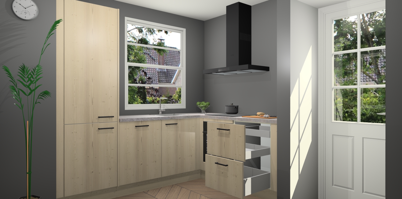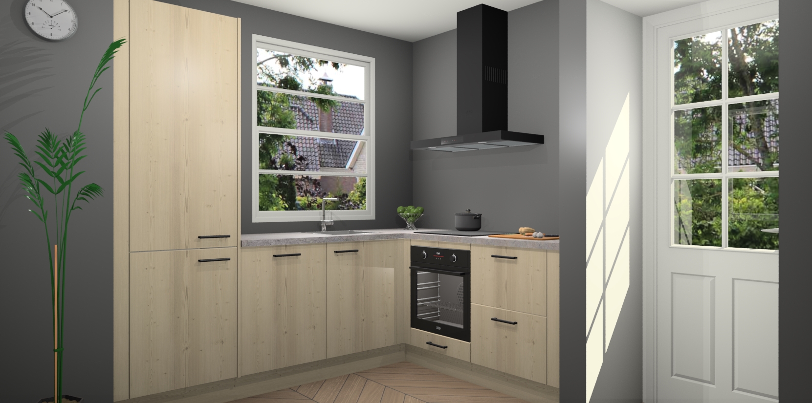 Wilt u een echte aanwinst voor uw keuken, maar bent u op zoek naar iets specialers dan de standaardkeukens? Kies dan voor de Vuren keuken Harbin! Dit prachtige hoekkeukenontwerp geeft u alle ruimte om optimaal te genieten van heerlijk koken. Het uitmuntende afwerkingsniveau, de fraaie houtstructuur en de sfeervolle zwarte grepen maken van de Vuren keuken Harbin de perfecte keuze voor zowel enthousiaste thuiskoks als design-minded interieurliefhebbers.
