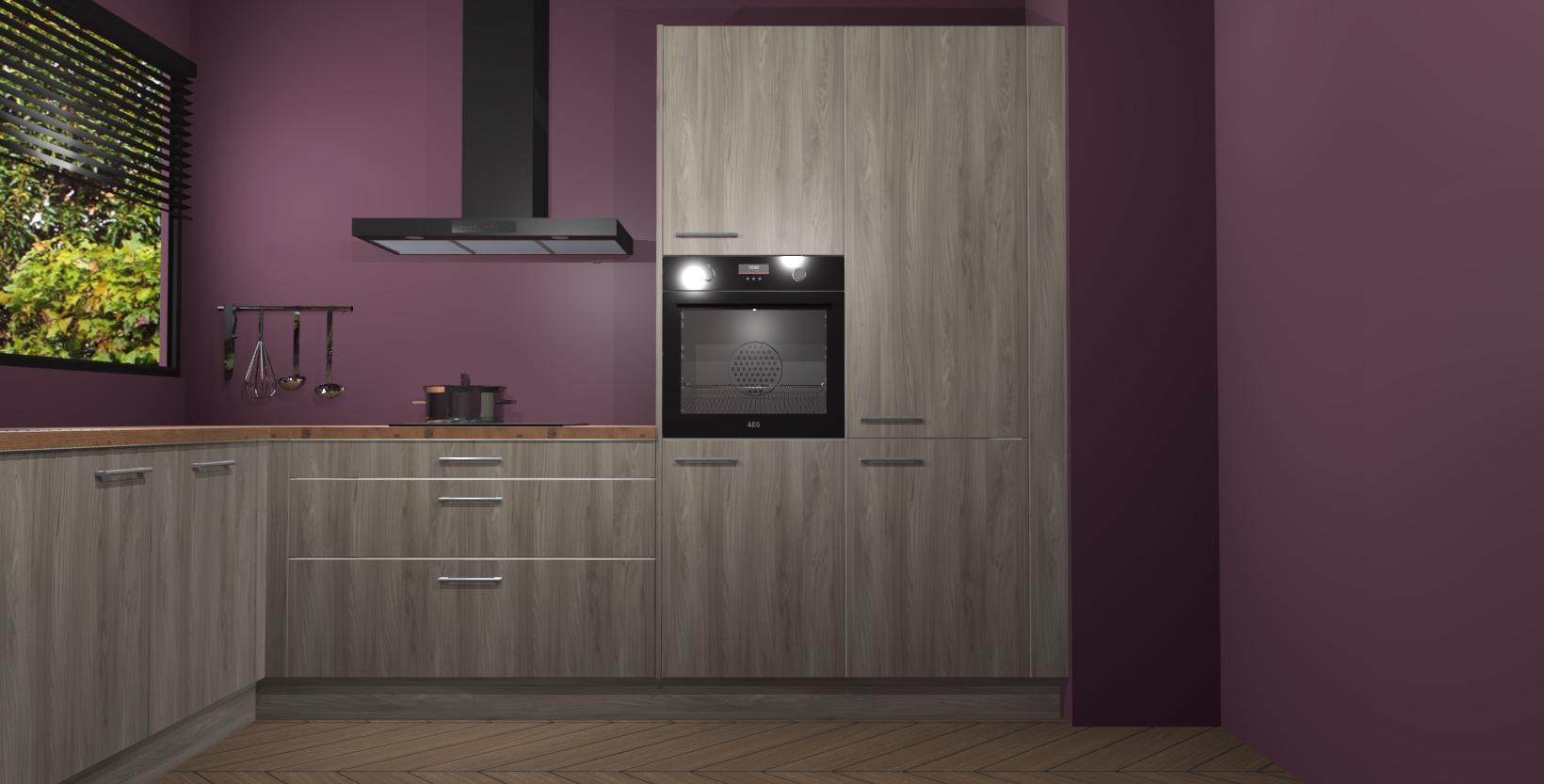 Met een modern, tijdloos design en ruime opslagruimte, zult u zich in no-time thuis voelen in uw nieuwe keuken. Uw leven wordt eenvoudiger met de soft-close deuren die voor het ultieme stille comfort zorgen - geen geluid dat u stoort terwijl u kookt. Ook is de keuken voorzien van 5 ingebouwde apparaten: een oven, inductie kookplaat, afzuigkap, vaatwasser en koelkast. Deze kunnen gemakkelijk na bestelling worden bijgewerkt naar AEG - waardoor uw luxe ervaring compleet is.