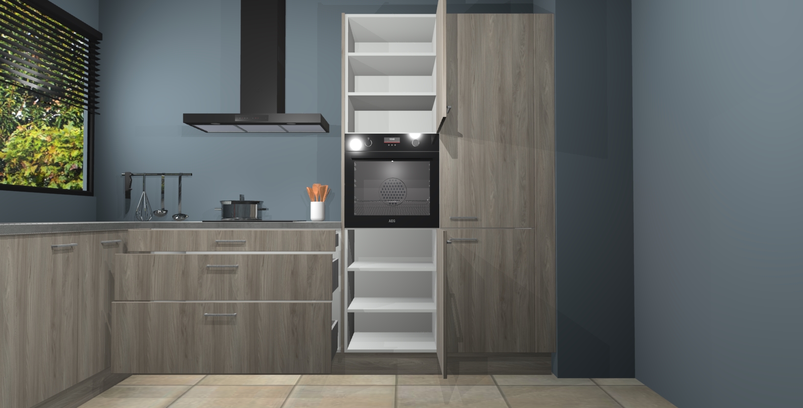 Met een modern, tijdloos design en ruime opslagruimte, zult u zich in no-time thuis voelen in uw nieuwe keuken. Uw leven wordt eenvoudiger met de soft-close deuren die voor het ultieme stille comfort zorgen - geen geluid dat u stoort terwijl u kookt. Ook is de keuken voorzien van 5 ingebouwde apparaten: een oven, inductie kookplaat, afzuigkap, vaatwasser en koelkast. Deze kunnen gemakkelijk na bestelling worden bijgewerkt naar AEG - waardoor uw luxe ervaring compleet is.
