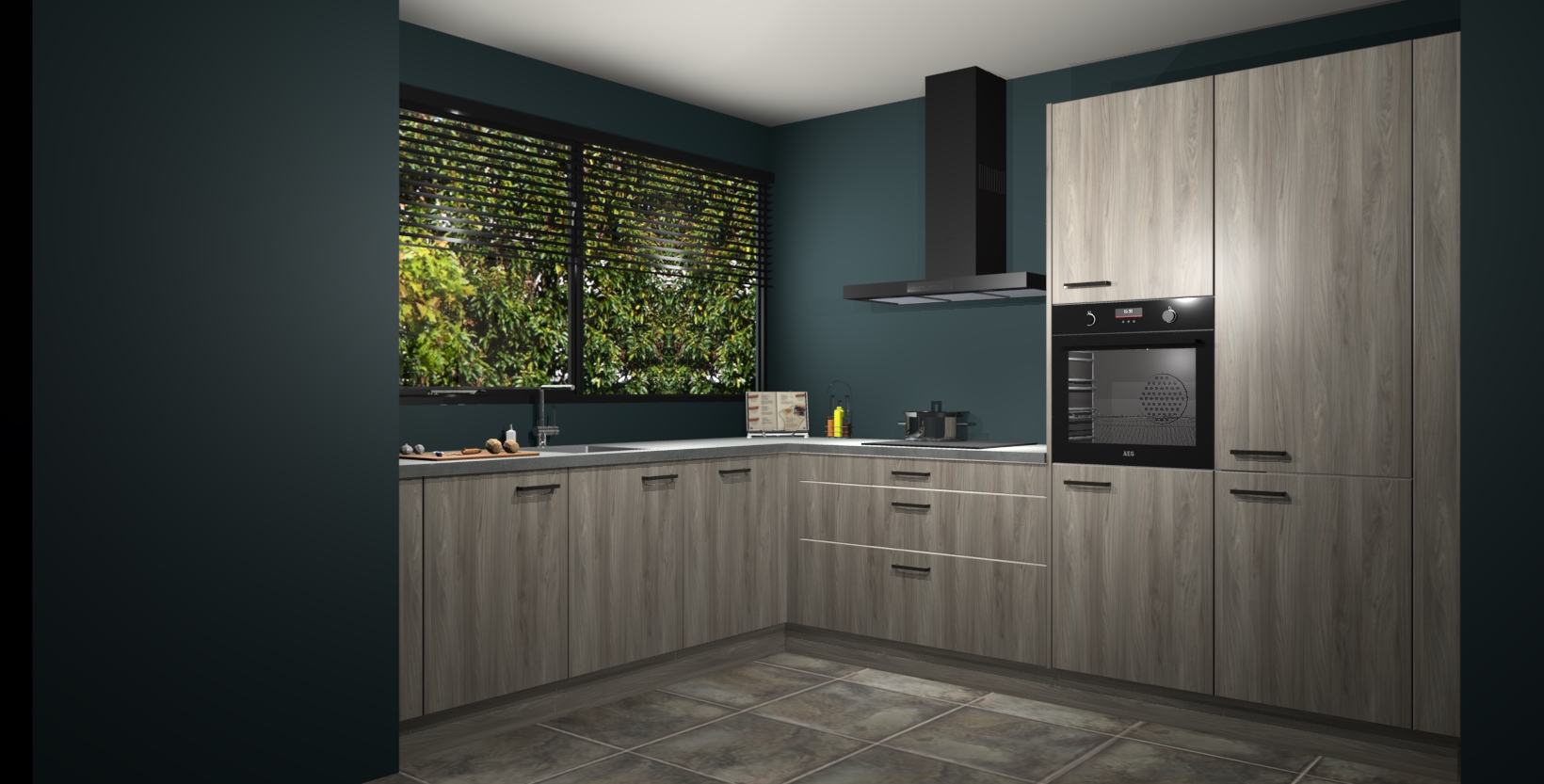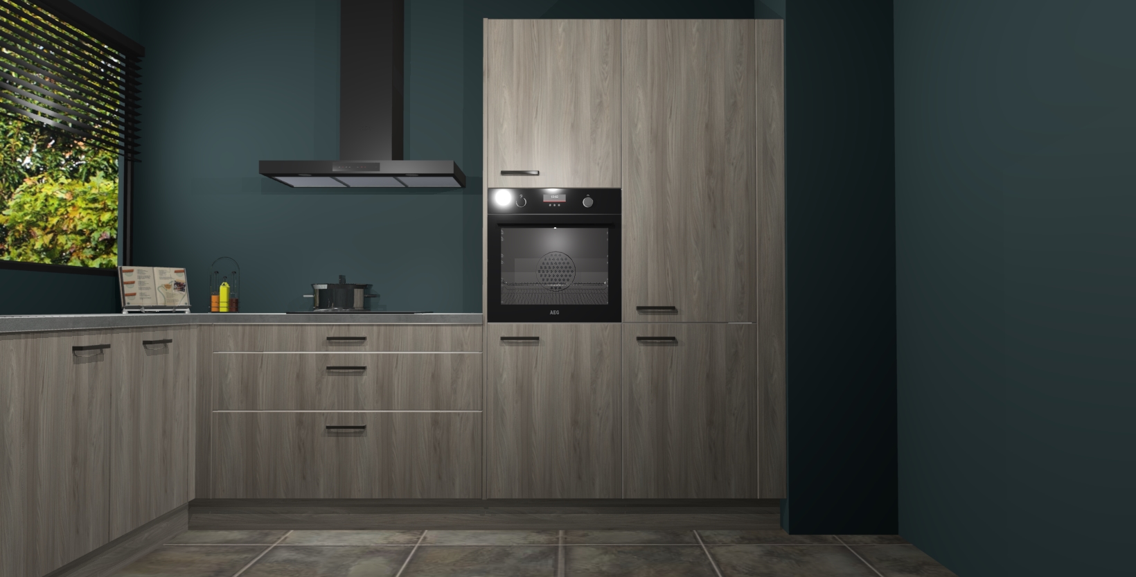 Met een modern, tijdloos design en ruime opslagruimte, zult u zich in no-time thuis voelen in uw nieuwe keuken. Uw leven wordt eenvoudiger met de soft-close deuren die voor het ultieme stille comfort zorgen - geen geluid dat u stoort terwijl u kookt. Ook is de keuken voorzien van 5 ingebouwde apparaten: een oven, inductie kookplaat, afzuigkap, vaatwasser en koelkast. Deze kunnen gemakkelijk na bestelling worden bijgewerkt naar AEG - waardoor uw luxe ervaring compleet is.