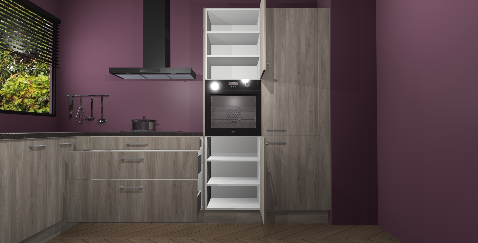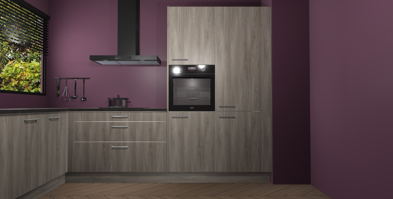 Met een modern, tijdloos design en ruime opslagruimte, zult u zich in no-time thuis voelen in uw nieuwe keuken. Uw leven wordt eenvoudiger met de soft-close deuren die voor het ultieme stille comfort zorgen - geen geluid dat u stoort terwijl u kookt. Ook is de keuken voorzien van 5 ingebouwde apparaten: een oven, inductie kookplaat, afzuigkap, vaatwasser en koelkast. Deze kunnen gemakkelijk na bestelling worden bijgewerkt naar AEG - waardoor uw luxe ervaring compleet is.