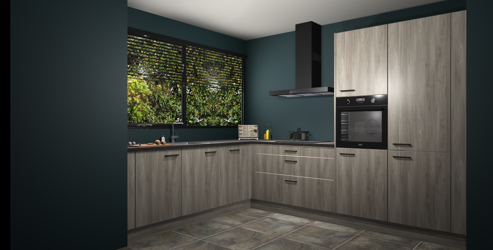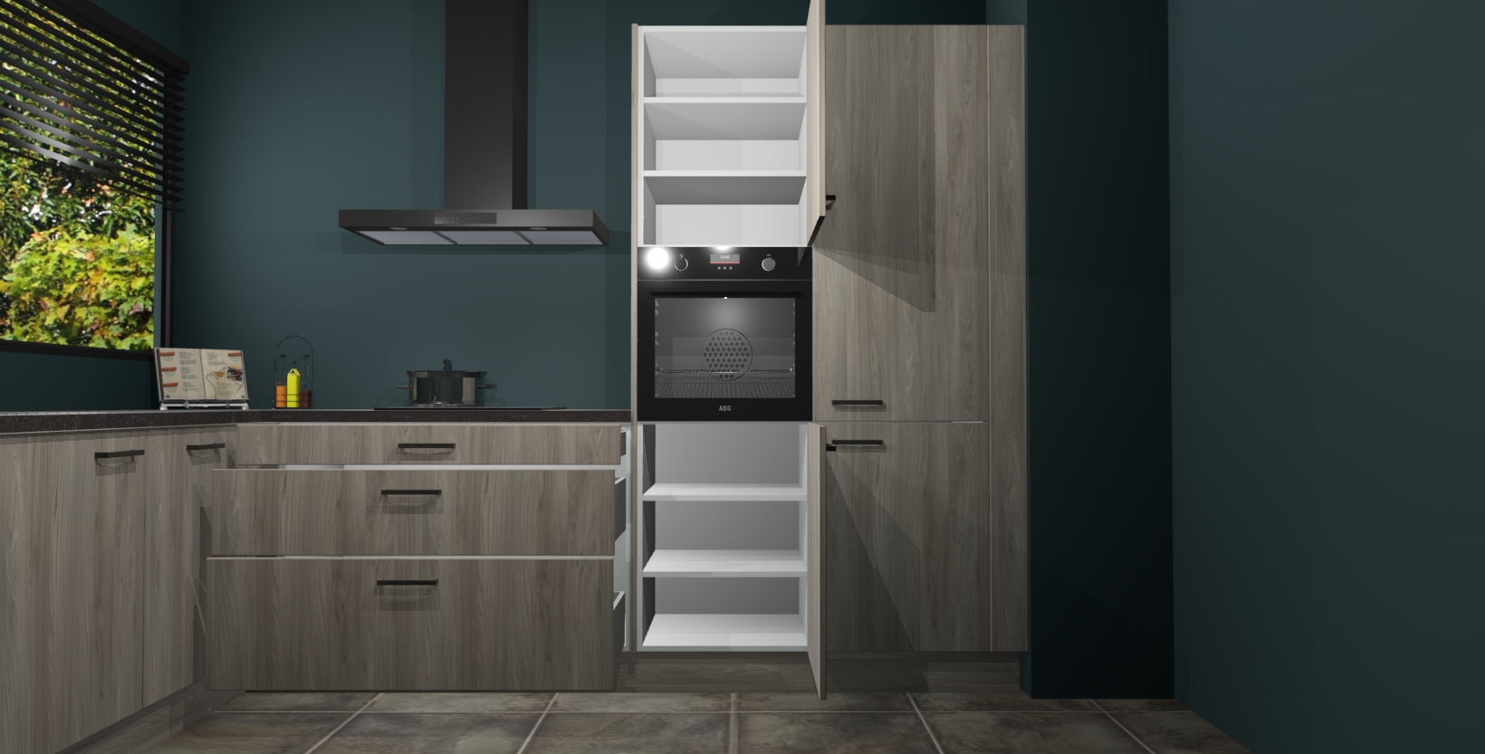 Met een modern, tijdloos design en ruime opslagruimte, zult u zich in no-time thuis voelen in uw nieuwe keuken. Uw leven wordt eenvoudiger met de soft-close deuren die voor het ultieme stille comfort zorgen - geen geluid dat u stoort terwijl u kookt. Ook is de keuken voorzien van 5 ingebouwde apparaten: een oven, inductie kookplaat, afzuigkap, vaatwasser en koelkast. Deze kunnen gemakkelijk na bestelling worden bijgewerkt naar AEG - waardoor uw luxe ervaring compleet is.