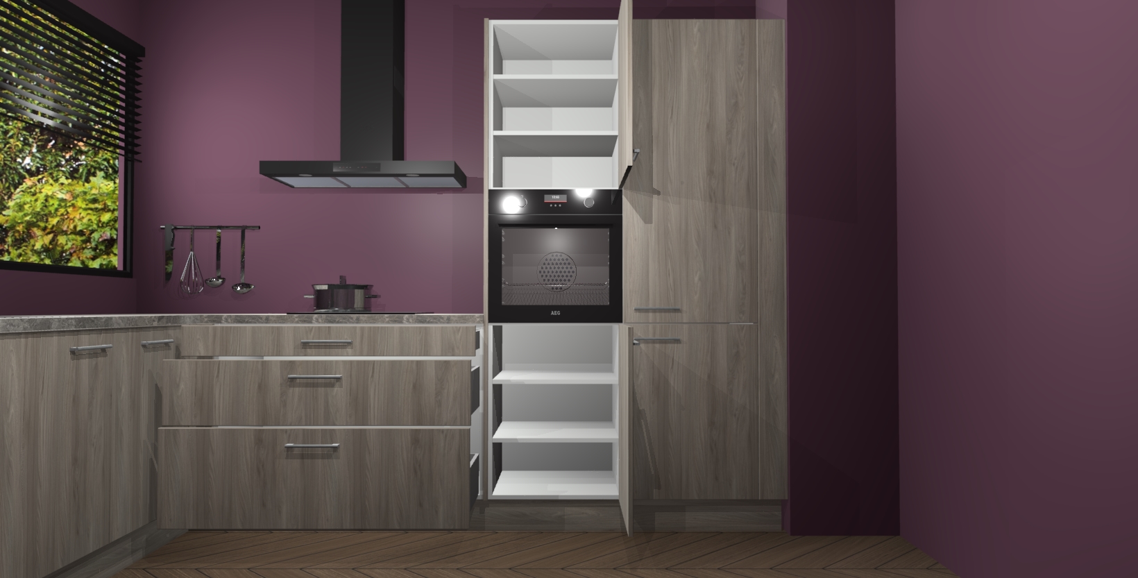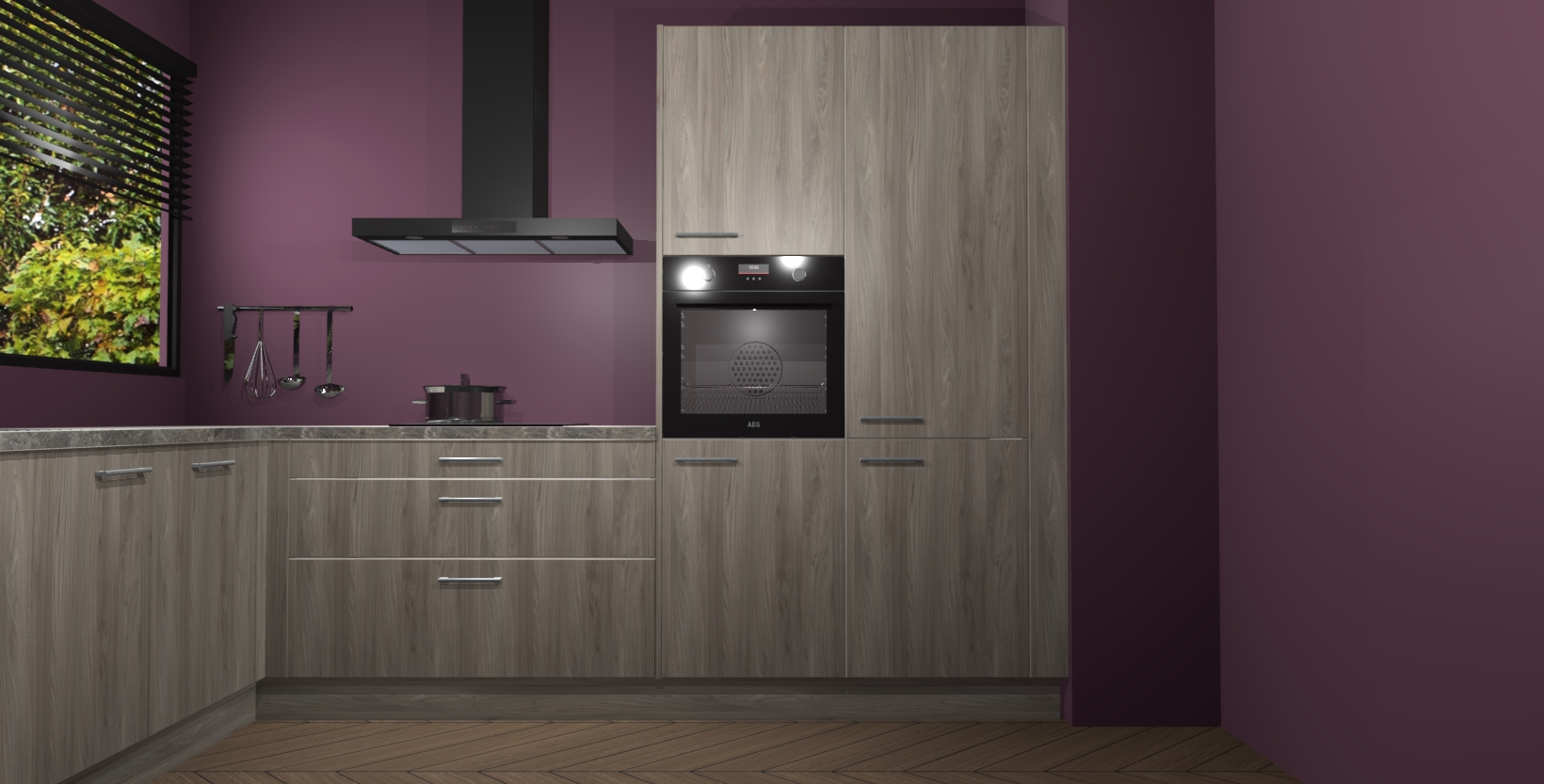 Met een modern, tijdloos design en ruime opslagruimte, zult u zich in no-time thuis voelen in uw nieuwe keuken. Uw leven wordt eenvoudiger met de soft-close deuren die voor het ultieme stille comfort zorgen - geen geluid dat u stoort terwijl u kookt. Ook is de keuken voorzien van 5 ingebouwde apparaten: een oven, inductie kookplaat, afzuigkap, vaatwasser en koelkast. Deze kunnen gemakkelijk na bestelling worden bijgewerkt naar AEG - waardoor uw luxe ervaring compleet is.