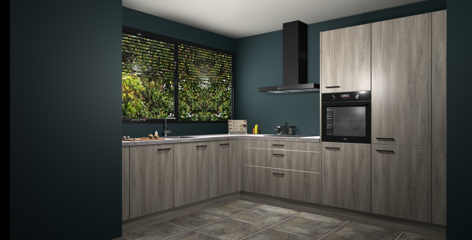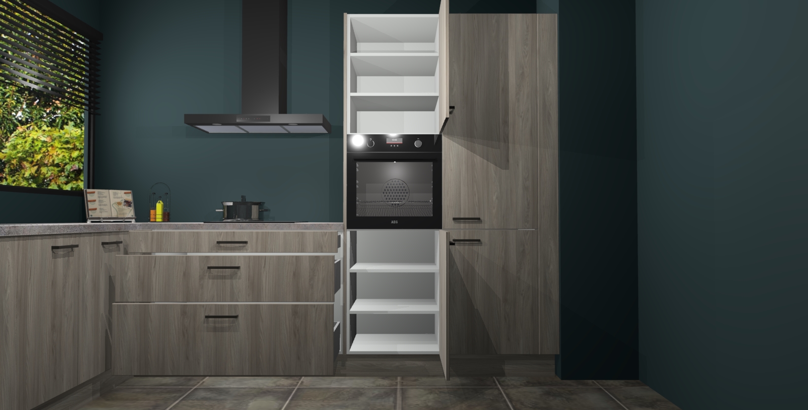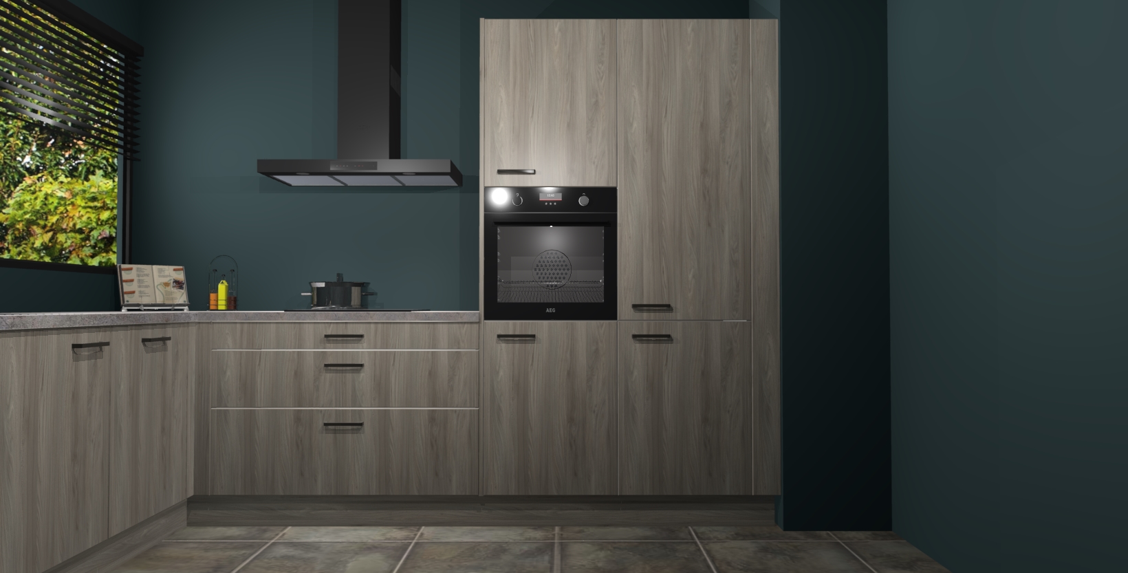 Met een modern, tijdloos design en ruime opslagruimte, zult u zich in no-time thuis voelen in uw nieuwe keuken. Uw leven wordt eenvoudiger met de soft-close deuren die voor het ultieme stille comfort zorgen - geen geluid dat u stoort terwijl u kookt. Ook is de keuken voorzien van 5 ingebouwde apparaten: een oven, inductie kookplaat, afzuigkap, vaatwasser en koelkast. Deze kunnen gemakkelijk na bestelling worden bijgewerkt naar AEG - waardoor uw luxe ervaring compleet is.