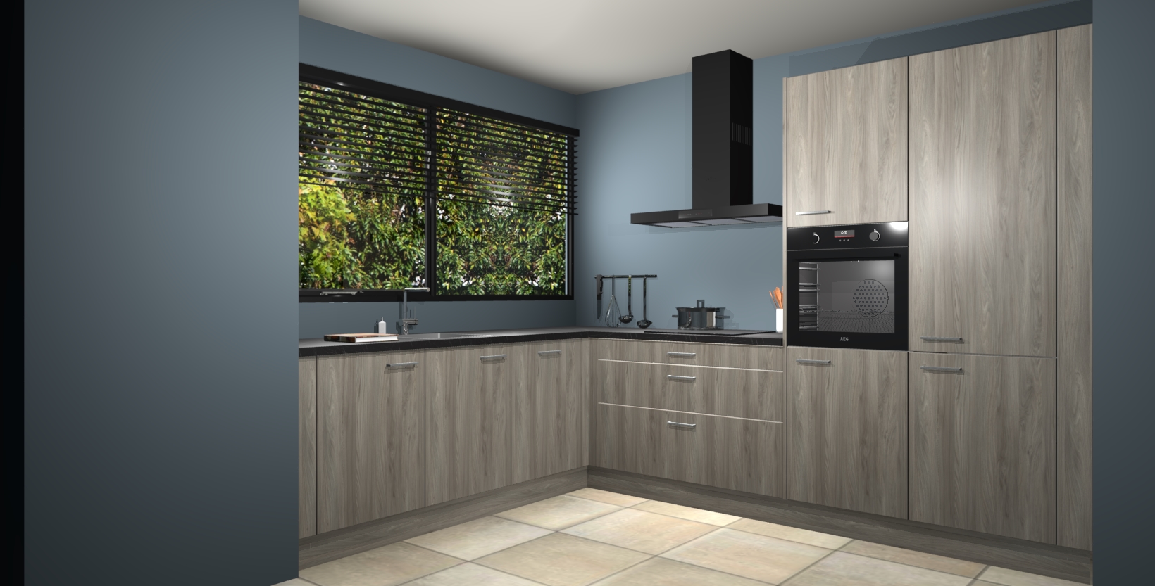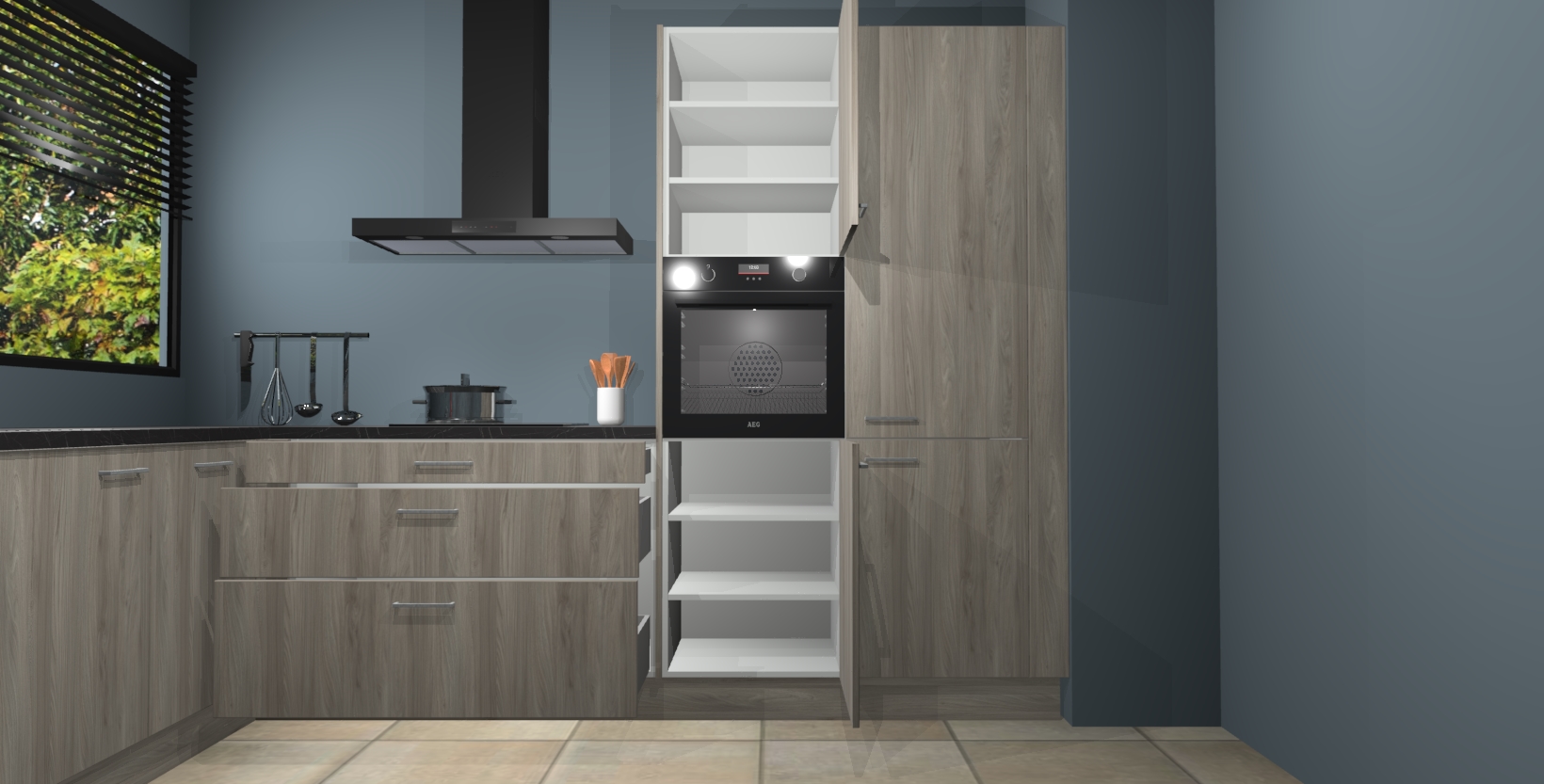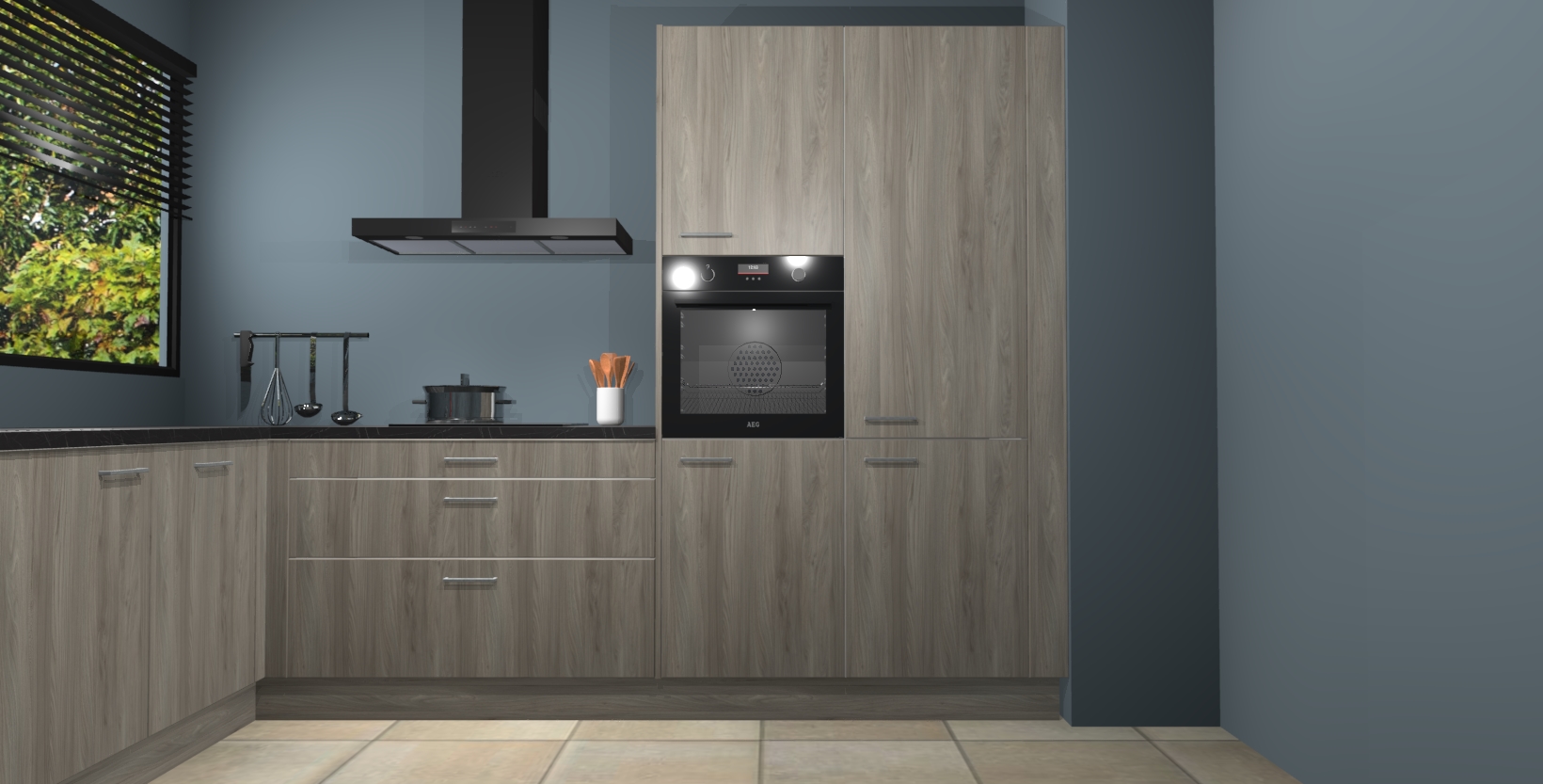 Met een modern, tijdloos design en ruime opslagruimte, zult u zich in no-time thuis voelen in uw nieuwe keuken. Uw leven wordt eenvoudiger met de soft-close deuren die voor het ultieme stille comfort zorgen - geen geluid dat u stoort terwijl u kookt. Ook is de keuken voorzien van 5 ingebouwde apparaten: een oven, inductie kookplaat, afzuigkap, vaatwasser en koelkast. Deze kunnen gemakkelijk na bestelling worden bijgewerkt naar AEG - waardoor uw luxe ervaring compleet is.