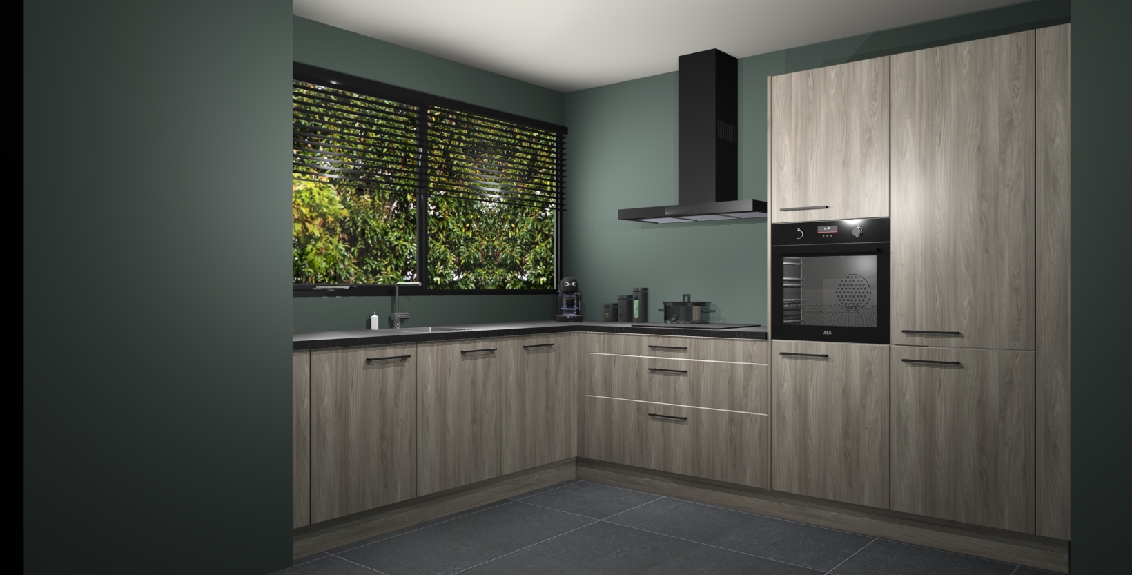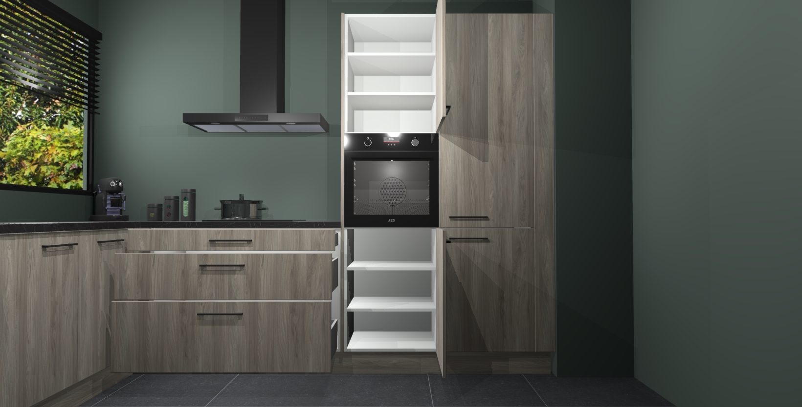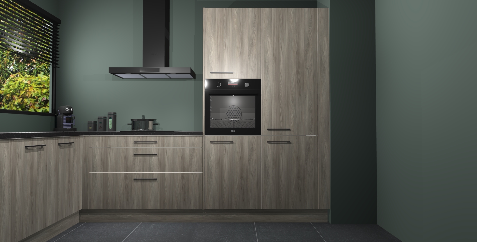 Met een modern, tijdloos design en ruime opslagruimte, zult u zich in no-time thuis voelen in uw nieuwe keuken. Uw leven wordt eenvoudiger met de soft-close deuren die voor het ultieme stille comfort zorgen - geen geluid dat u stoort terwijl u kookt. Ook is de keuken voorzien van 5 ingebouwde apparaten: een oven, inductie kookplaat, afzuigkap, vaatwasser en koelkast. Deze kunnen gemakkelijk na bestelling worden bijgewerkt naar AEG - waardoor uw luxe ervaring compleet is.