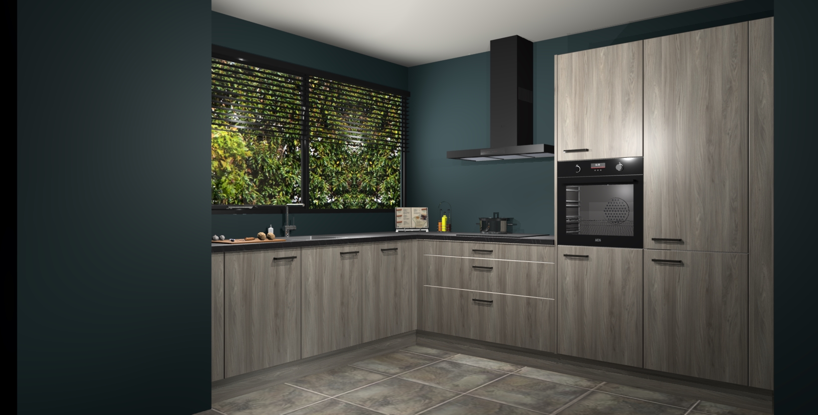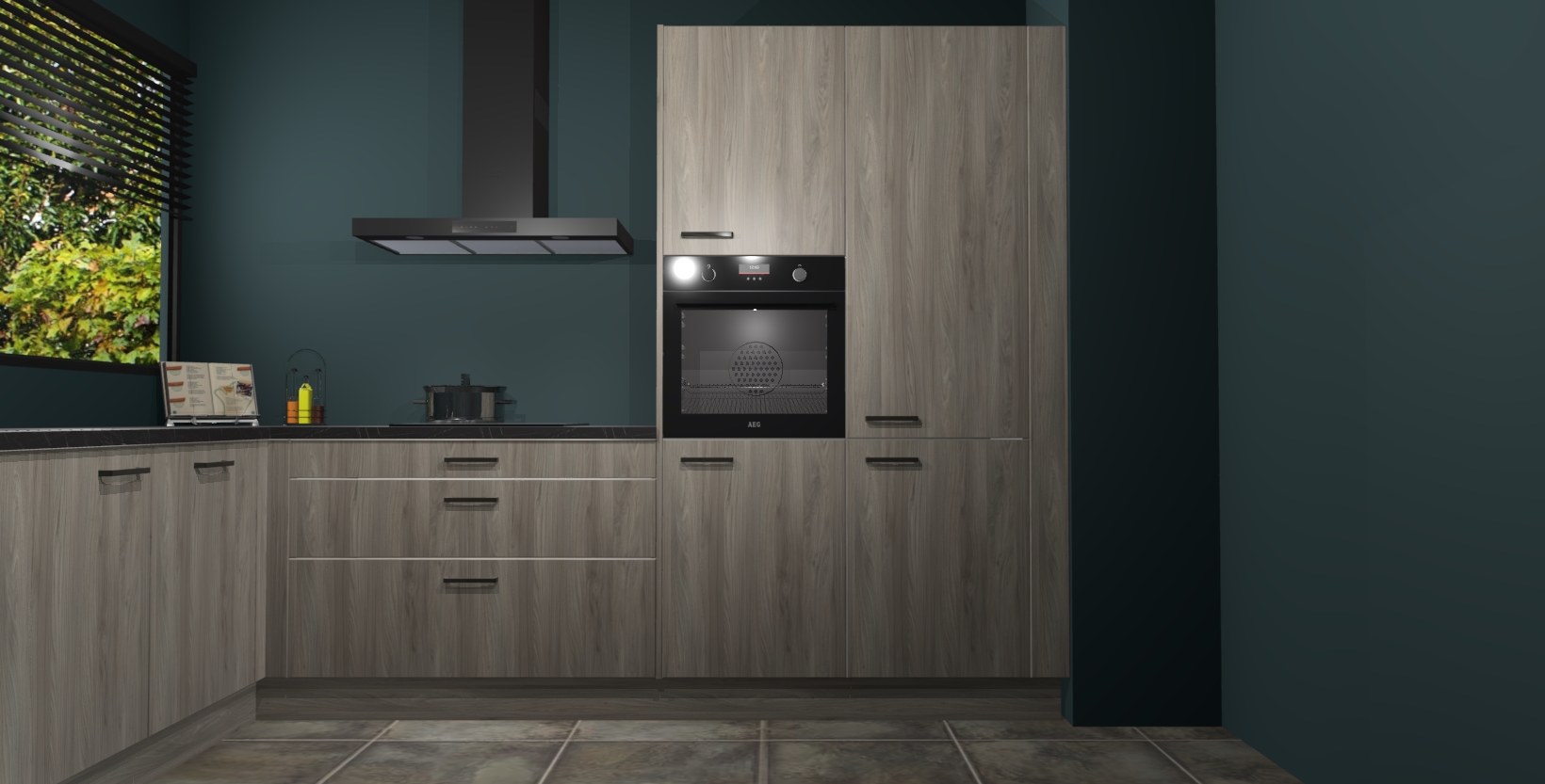 Met een modern, tijdloos design en ruime opslagruimte, zult u zich in no-time thuis voelen in uw nieuwe keuken. Uw leven wordt eenvoudiger met de soft-close deuren die voor het ultieme stille comfort zorgen - geen geluid dat u stoort terwijl u kookt. Ook is de keuken voorzien van 5 ingebouwde apparaten: een oven, inductie kookplaat, afzuigkap, vaatwasser en koelkast. Deze kunnen gemakkelijk na bestelling worden bijgewerkt naar AEG - waardoor uw luxe ervaring compleet is.