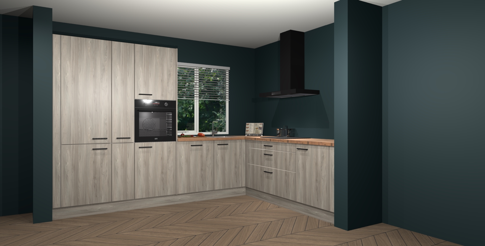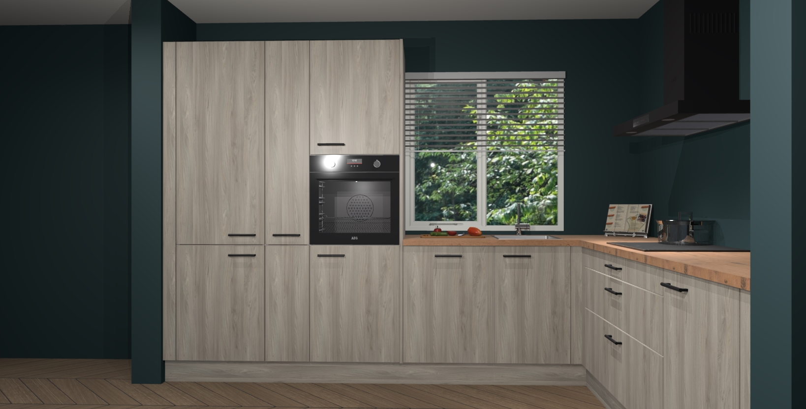 Met een modern, tijdloos design en ruime opslagruimte, zult u zich in no-time thuis voelen in uw nieuwe keuken. Uw leven wordt eenvoudiger met de soft-close deuren die voor het ultieme stille comfort zorgen - geen geluid dat u stoort terwijl u kookt. Ook is de keuken voorzien van 5 ingebouwde apparaten: een oven, inductie kookplaat, afzuigkap, vaatwasser en koelkast. Deze kunnen gemakkelijk na bestelling worden bijgewerkt naar AEG - waardoor uw luxe ervaring compleet is.