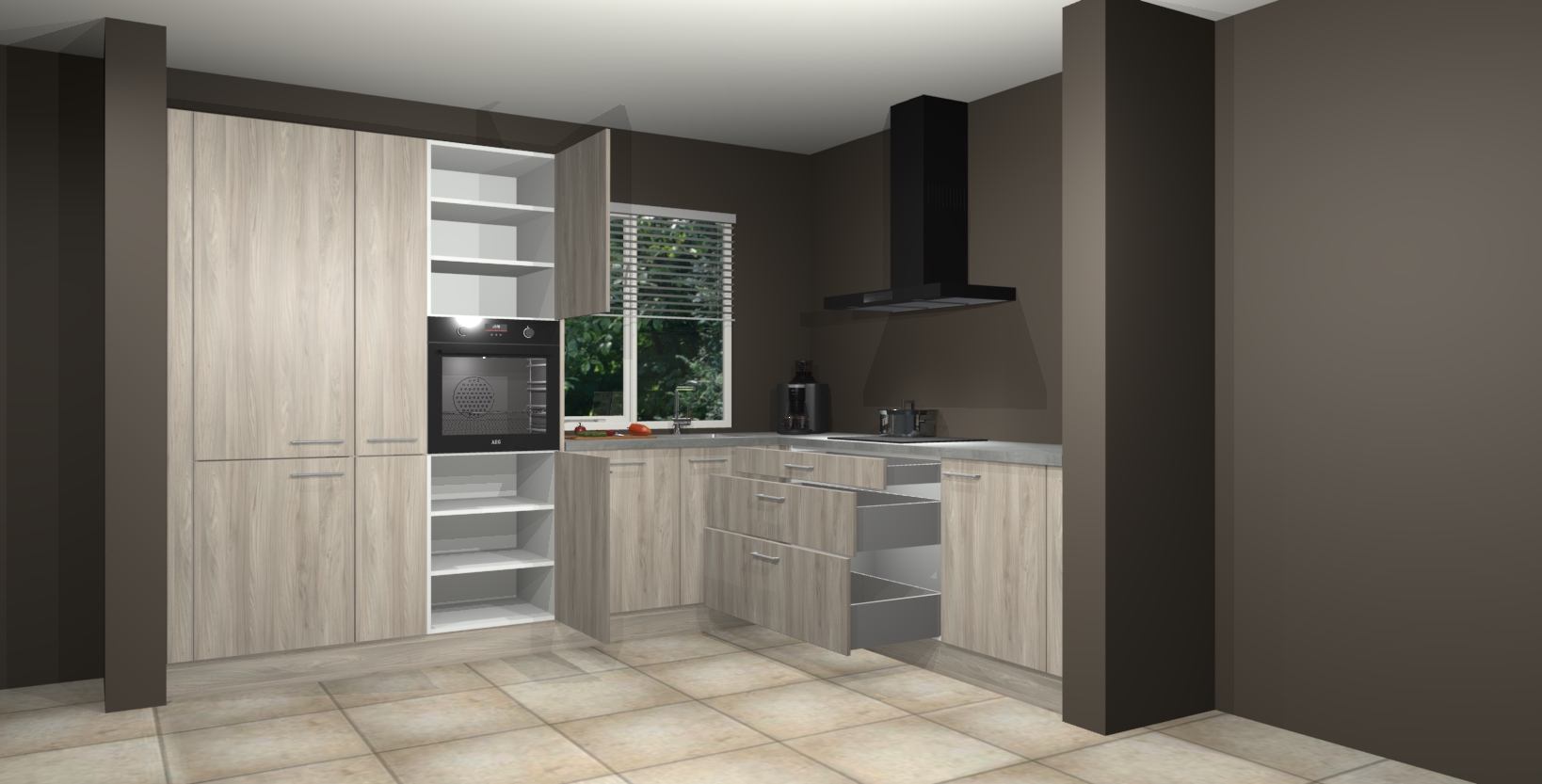 Met een modern, tijdloos design en ruime opslagruimte, zult u zich in no-time thuis voelen in uw nieuwe keuken. Uw leven wordt eenvoudiger met de soft-close deuren die voor het ultieme stille comfort zorgen - geen geluid dat u stoort terwijl u kookt. Ook is de keuken voorzien van 5 ingebouwde apparaten: een oven, inductie kookplaat, afzuigkap, vaatwasser en koelkast. Deze kunnen gemakkelijk na bestelling worden bijgewerkt naar AEG - waardoor uw luxe ervaring compleet is.