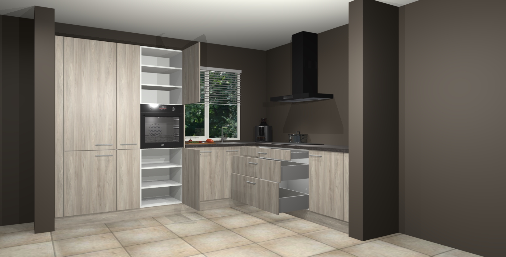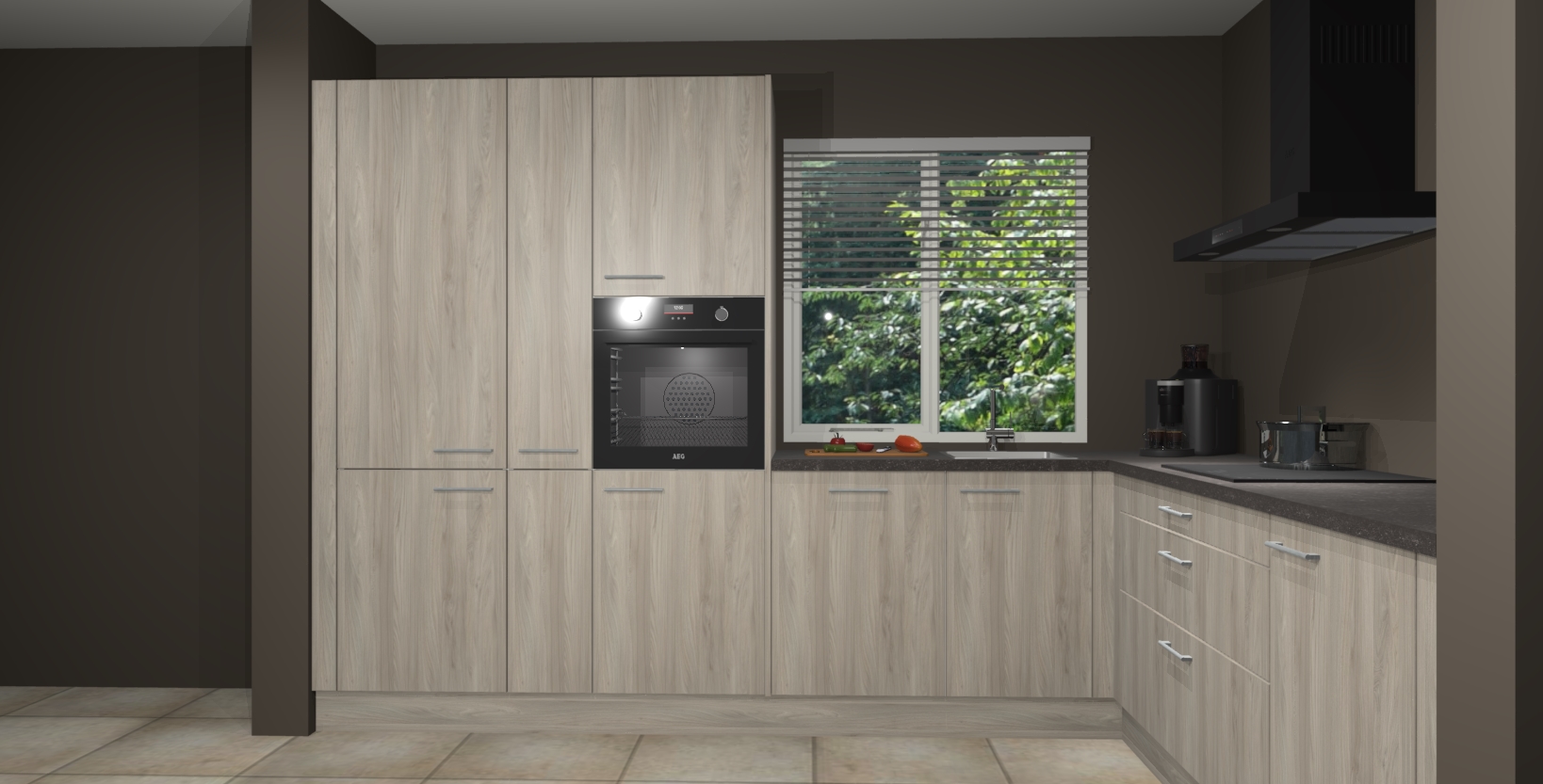 Met een modern, tijdloos design en ruime opslagruimte, zult u zich in no-time thuis voelen in uw nieuwe keuken. Uw leven wordt eenvoudiger met de soft-close deuren die voor het ultieme stille comfort zorgen - geen geluid dat u stoort terwijl u kookt. Ook is de keuken voorzien van 5 ingebouwde apparaten: een oven, inductie kookplaat, afzuigkap, vaatwasser en koelkast. Deze kunnen gemakkelijk na bestelling worden bijgewerkt naar AEG - waardoor uw luxe ervaring compleet is.