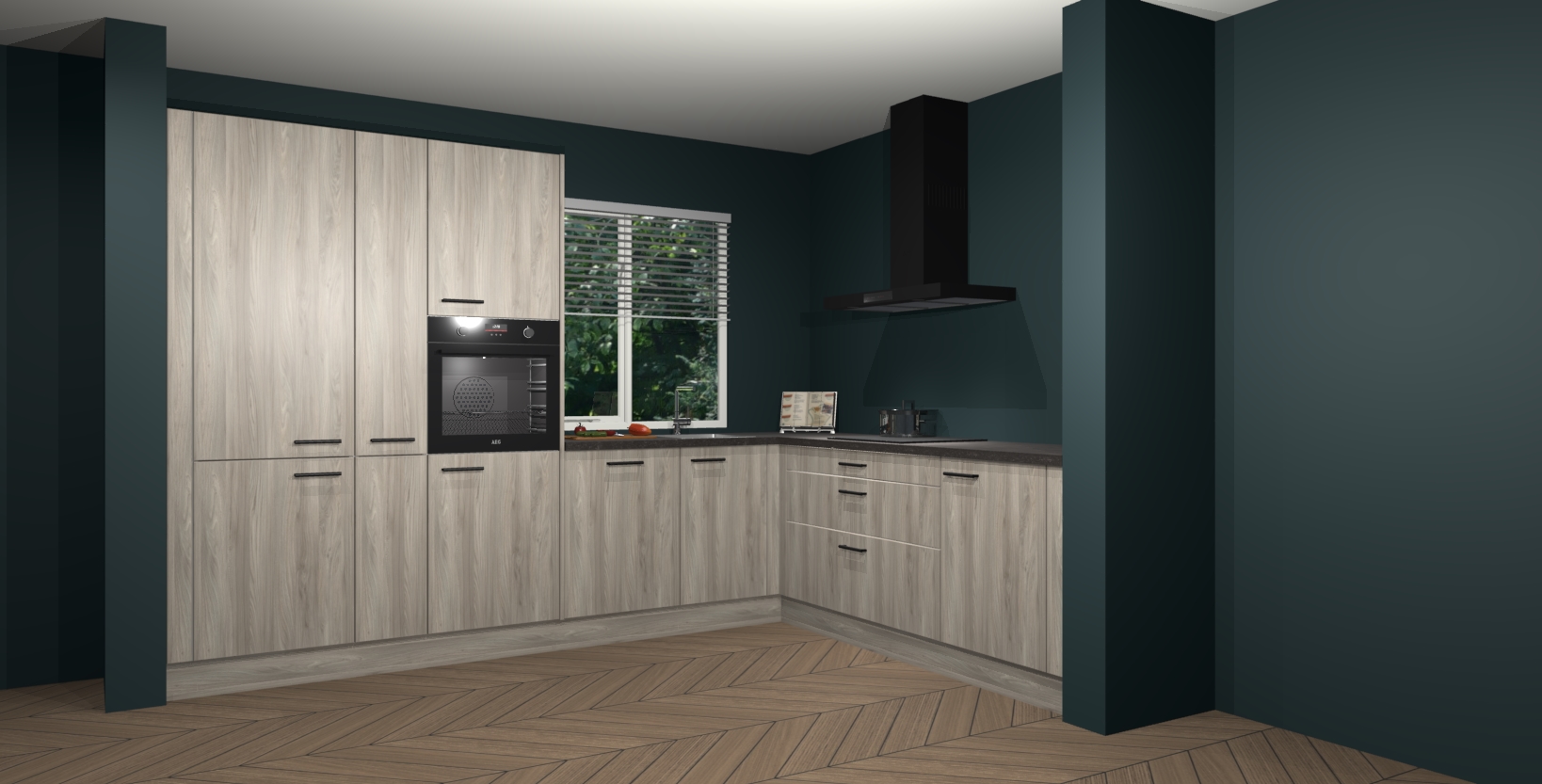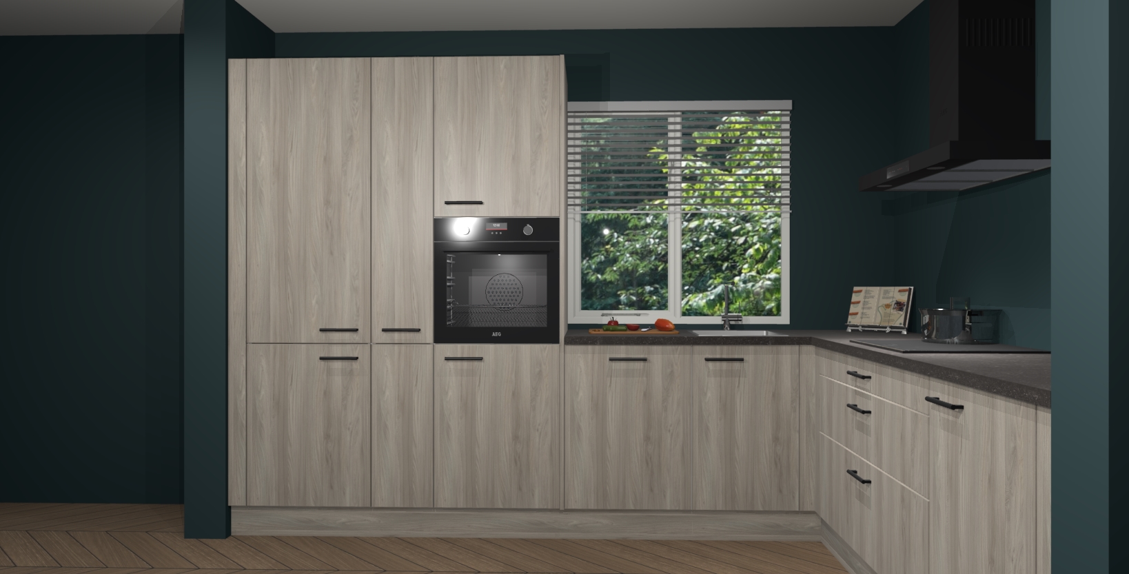 Met een modern, tijdloos design en ruime opslagruimte, zult u zich in no-time thuis voelen in uw nieuwe keuken. Uw leven wordt eenvoudiger met de soft-close deuren die voor het ultieme stille comfort zorgen - geen geluid dat u stoort terwijl u kookt. Ook is de keuken voorzien van 5 ingebouwde apparaten: een oven, inductie kookplaat, afzuigkap, vaatwasser en koelkast. Deze kunnen gemakkelijk na bestelling worden bijgewerkt naar AEG - waardoor uw luxe ervaring compleet is.