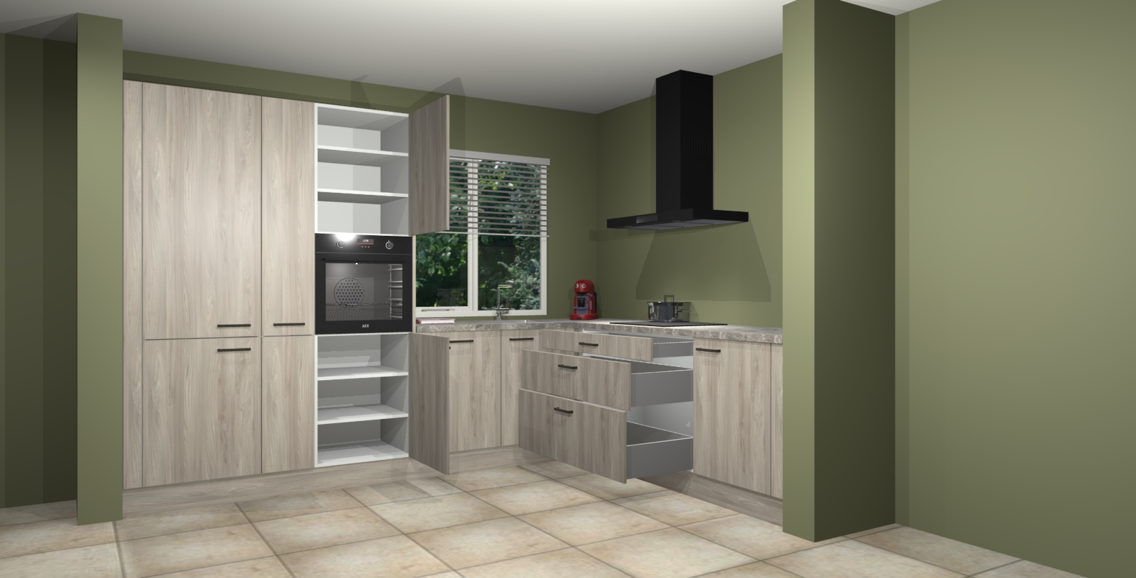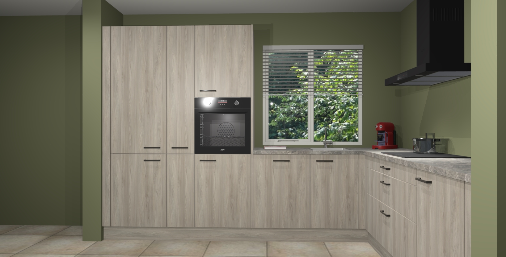 Met een modern, tijdloos design en ruime opslagruimte, zult u zich in no-time thuis voelen in uw nieuwe keuken. Uw leven wordt eenvoudiger met de soft-close deuren die voor het ultieme stille comfort zorgen - geen geluid dat u stoort terwijl u kookt. Ook is de keuken voorzien van 5 ingebouwde apparaten: een oven, inductie kookplaat, afzuigkap, vaatwasser en koelkast. Deze kunnen gemakkelijk na bestelling worden bijgewerkt naar AEG - waardoor uw luxe ervaring compleet is.