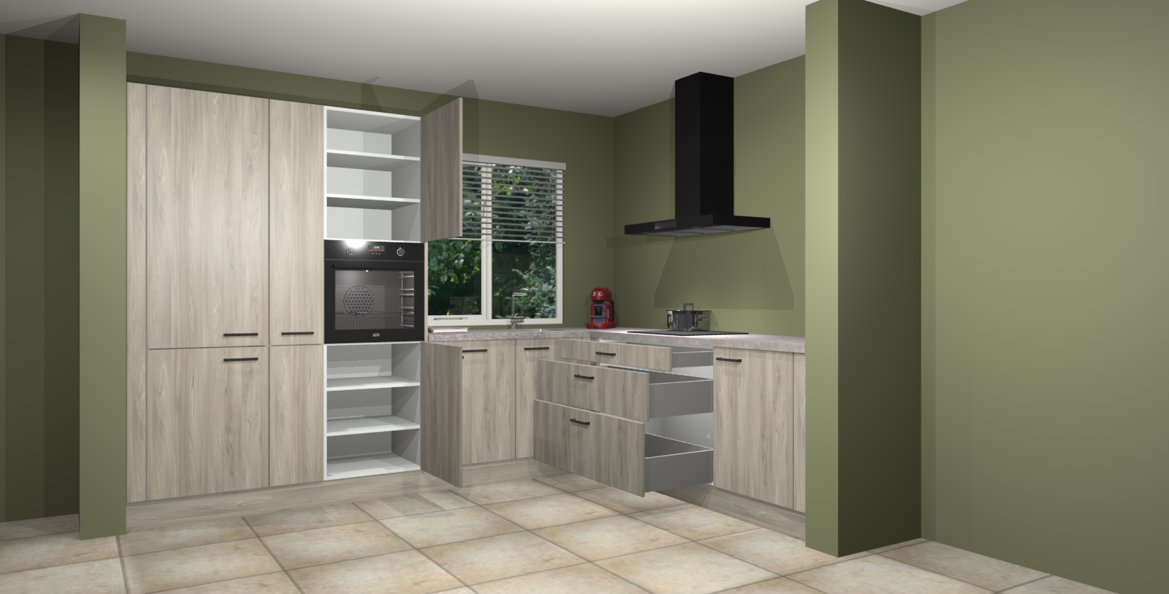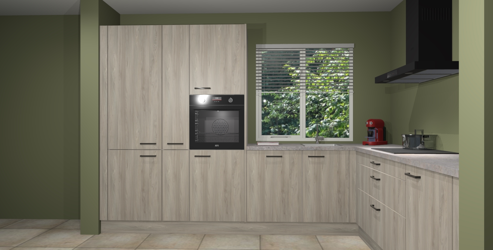 Met een modern, tijdloos design en ruime opslagruimte, zult u zich in no-time thuis voelen in uw nieuwe keuken. Uw leven wordt eenvoudiger met de soft-close deuren die voor het ultieme stille comfort zorgen - geen geluid dat u stoort terwijl u kookt. Ook is de keuken voorzien van 5 ingebouwde apparaten: een oven, inductie kookplaat, afzuigkap, vaatwasser en koelkast. Deze kunnen gemakkelijk na bestelling worden bijgewerkt naar AEG - waardoor uw luxe ervaring compleet is.