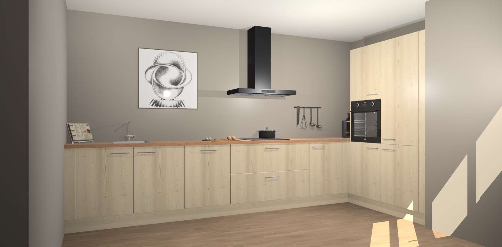 Welkom bij de Vuren keuken Khao Lak. Deze prachtige keuken zal de komende jaren het middelpunt van de belangstelling in uw huis zijn. Uitgerust met vijf inbouwapparaten komt u nooit kookgereedschap tekort. Bovendien geeft de warme houtlook elke ruimte een uitnodigende en tijdloze uitstraling.