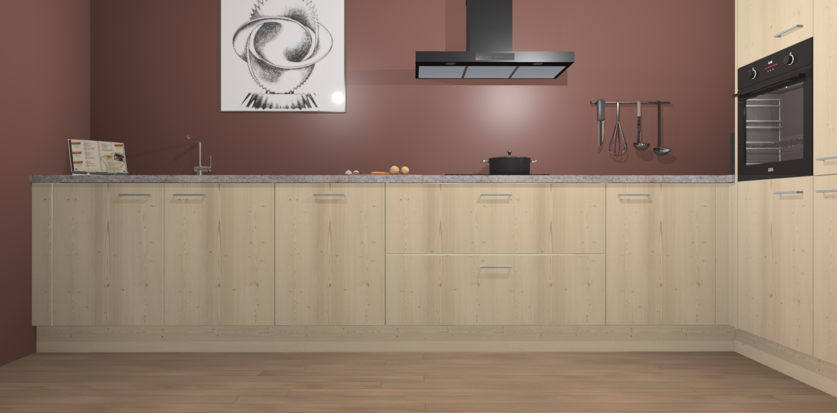 Welkom bij de Vuren keuken Khao Lak. Deze prachtige keuken zal de komende jaren het middelpunt van de belangstelling in uw huis zijn. Uitgerust met vijf inbouwapparaten komt u nooit kookgereedschap tekort. Bovendien geeft de warme houtlook elke ruimte een uitnodigende en tijdloze uitstraling.