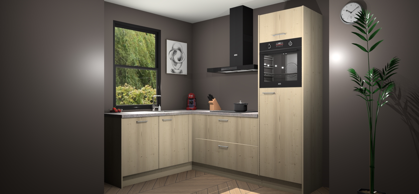 Deze prachtige hoekkeuken heeft alle benodigdheden om uw droomkook- en eetruimte compleet te maken. De Vuren kasten bieden een echo van raffinement, terwijl de 5 inbouwapparaten genoeg opties bieden voor het bereiden van heerlijke maaltijden. De oven, inductiekookplaat, afzuigkap, vaatwasser en koelkast zorgen ervoor dat u tijd in de keuken zo efficiënt mogelijk verloopt, terwijl ze ook dat extra vleugje luxe bieden.