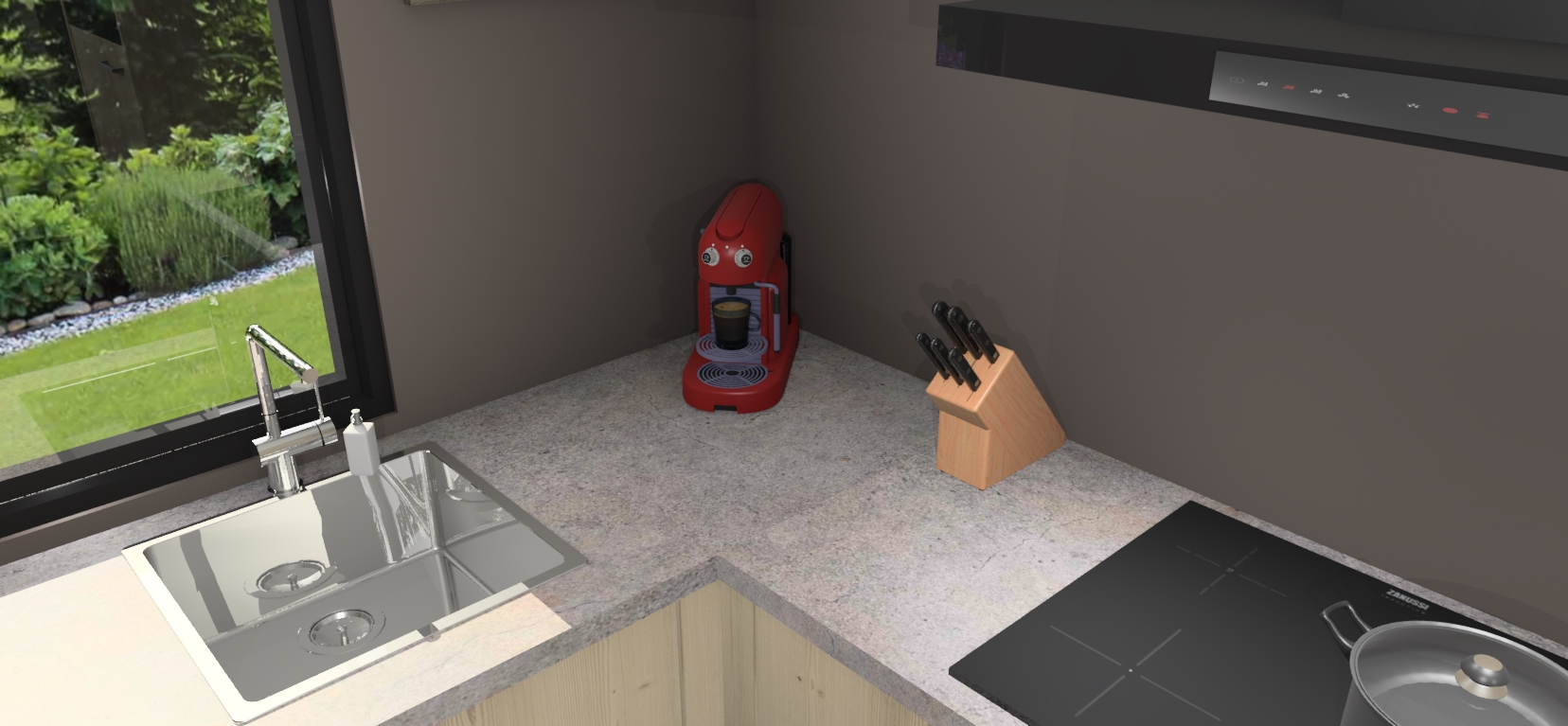 - Bij een hoekwerkblad zijn de hoeken in gevreesd en op maat gemaakt