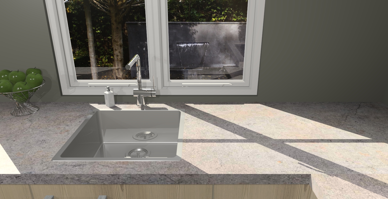• De spoelbak is nog niet in gevreesd. Dit dient tijdens het werk gedaan te worden