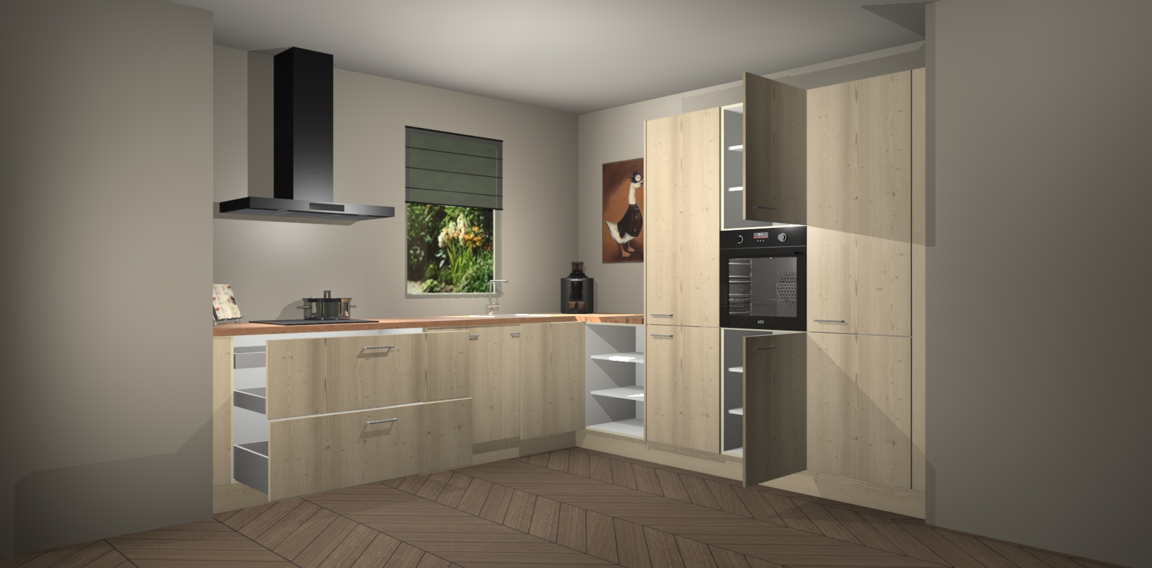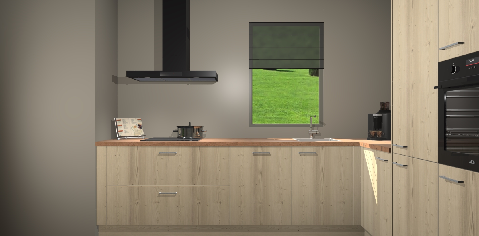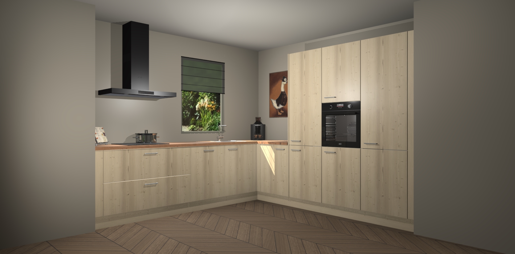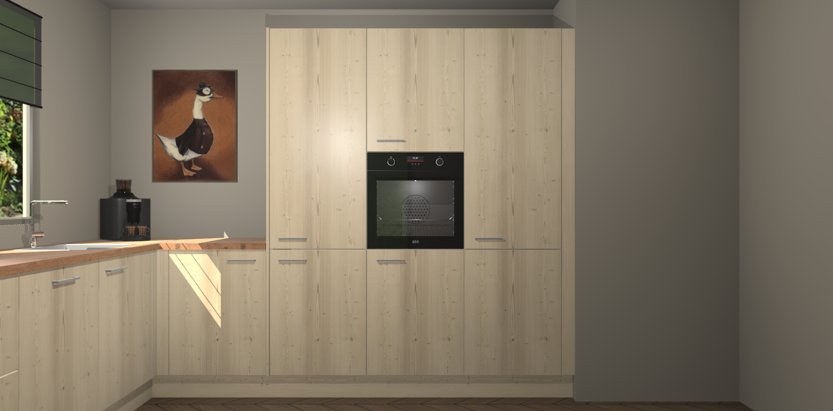 Welkom bij de Vuren keuken Laos. Deze prachtige keuken zal de komende jaren het middelpunt van de belangstelling in uw huis zijn. Uitgerust met vijf inbouwapparaten komt u nooit kookgereedschap tekort. Bovendien geeft de warme houtlook elke ruimte een uitnodigende en tijdloze uitstraling.