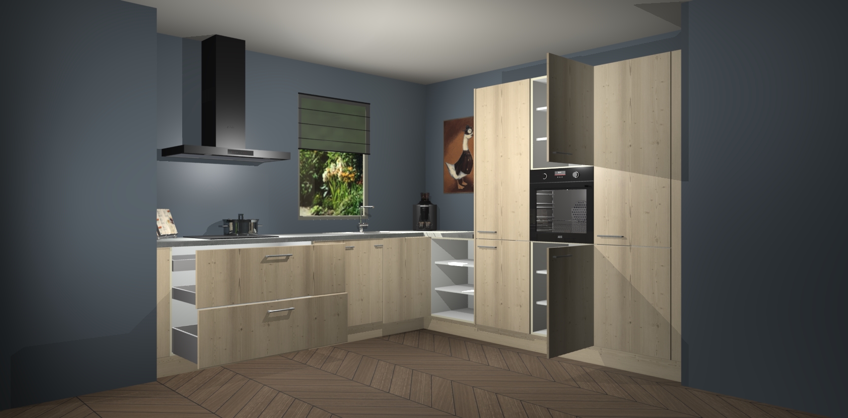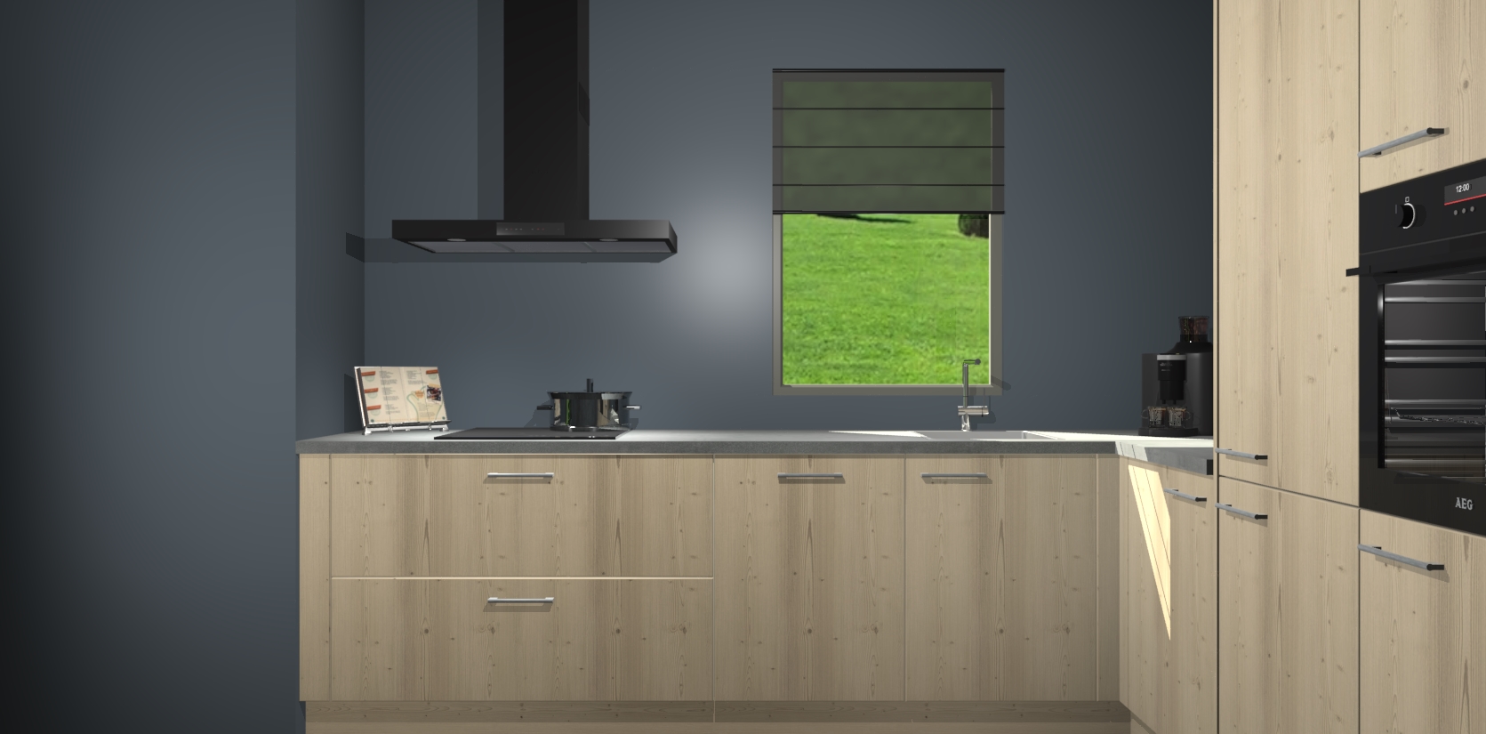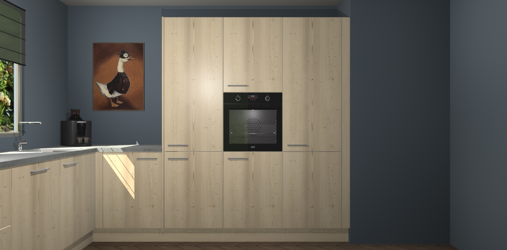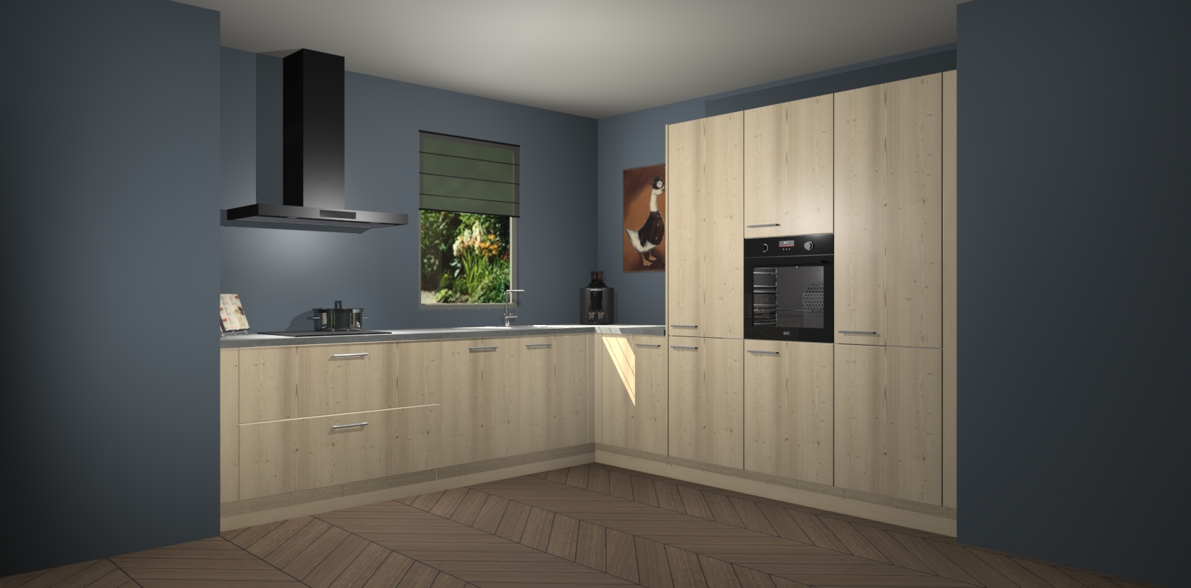 Welkom bij de Vuren keuken Laos. Deze prachtige keuken zal de komende jaren het middelpunt van de belangstelling in uw huis zijn. Uitgerust met vijf inbouwapparaten komt u nooit kookgereedschap tekort. Bovendien geeft de warme houtlook elke ruimte een uitnodigende en tijdloze uitstraling.