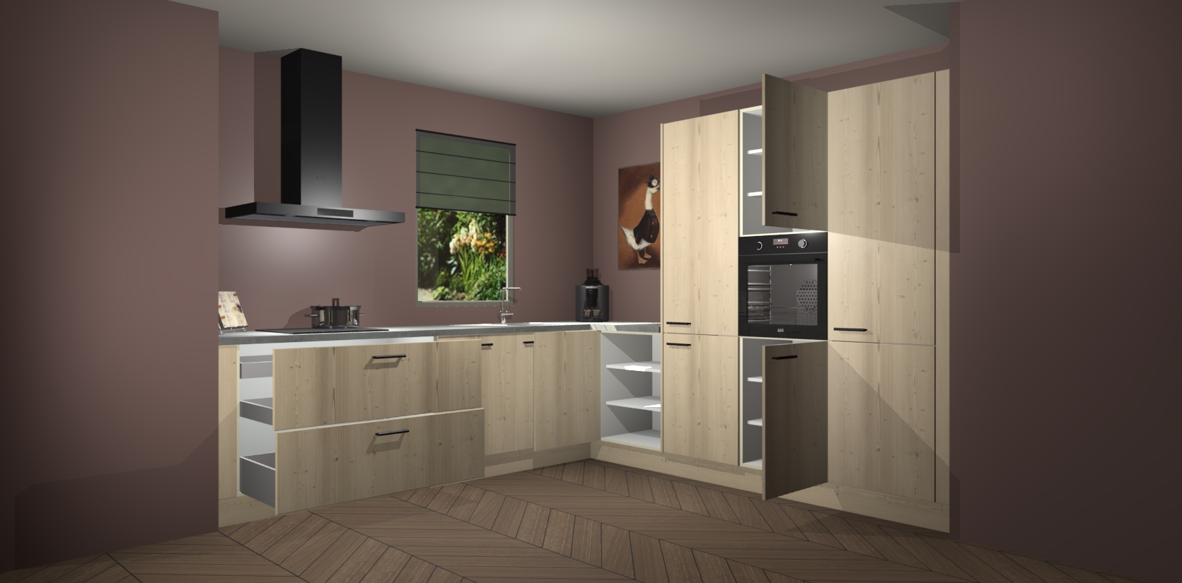 Welkom bij de Vuren keuken Laos. Deze prachtige keuken zal de komende jaren het middelpunt van de belangstelling in uw huis zijn. Uitgerust met vijf inbouwapparaten komt u nooit kookgereedschap tekort. Bovendien geeft de warme houtlook elke ruimte een uitnodigende en tijdloze uitstraling.