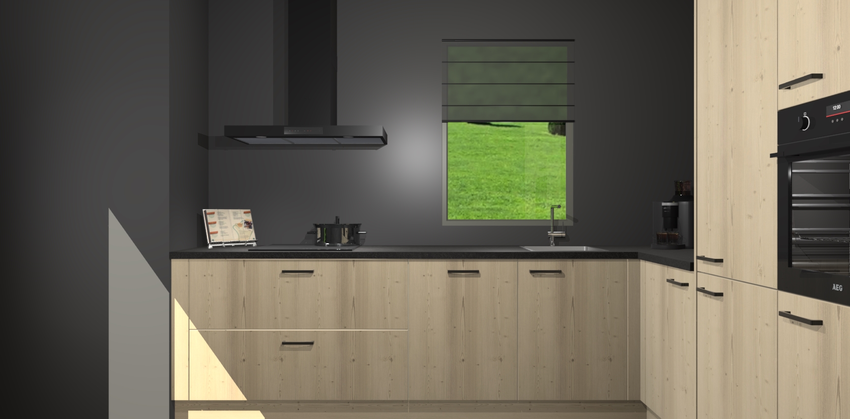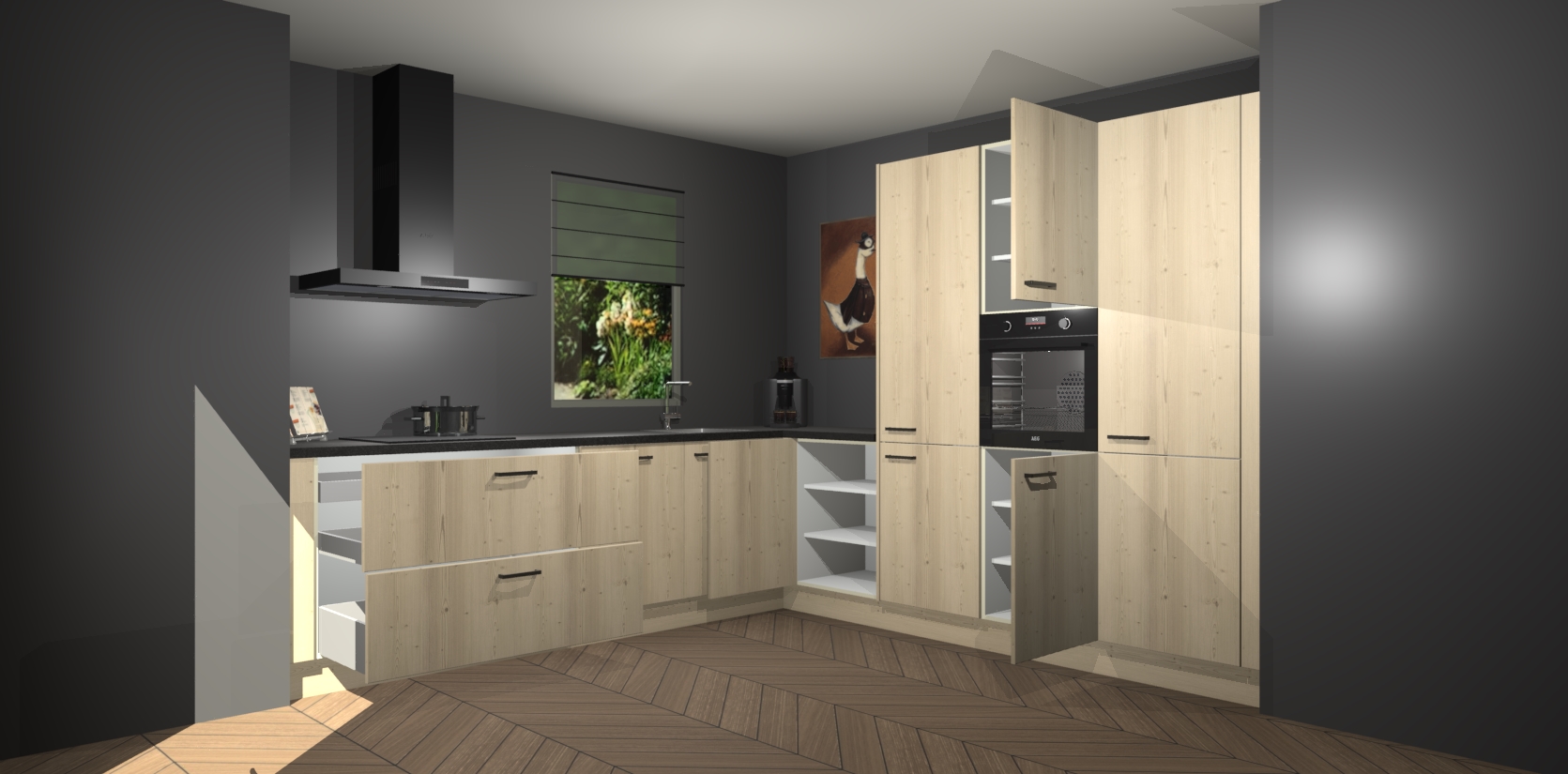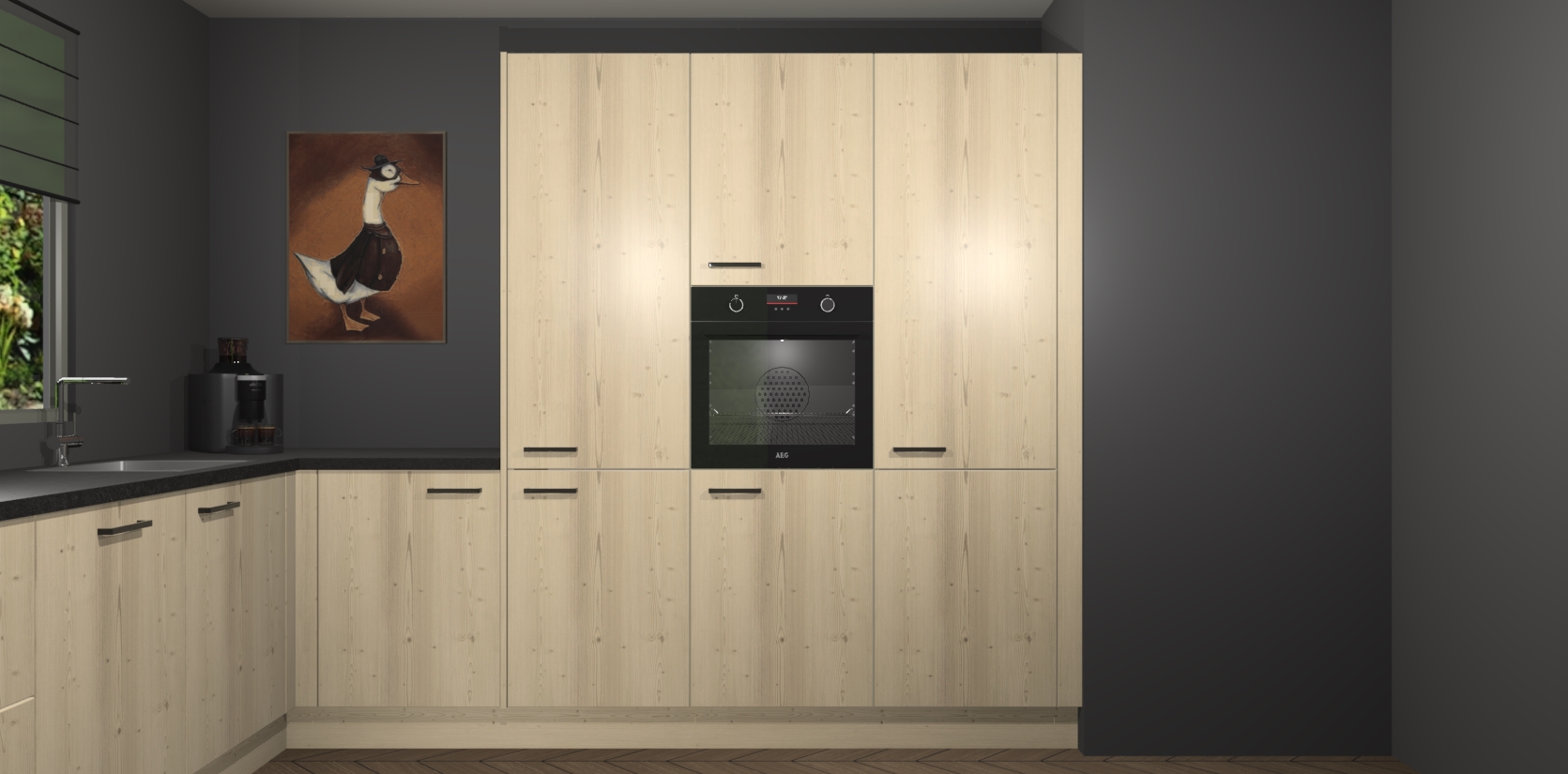 Welkom bij de Vuren keuken Laos. Deze prachtige keuken zal de komende jaren het middelpunt van de belangstelling in uw huis zijn. Uitgerust met vijf inbouwapparaten komt u nooit kookgereedschap tekort. Bovendien geeft de warme houtlook elke ruimte een uitnodigende en tijdloze uitstraling.