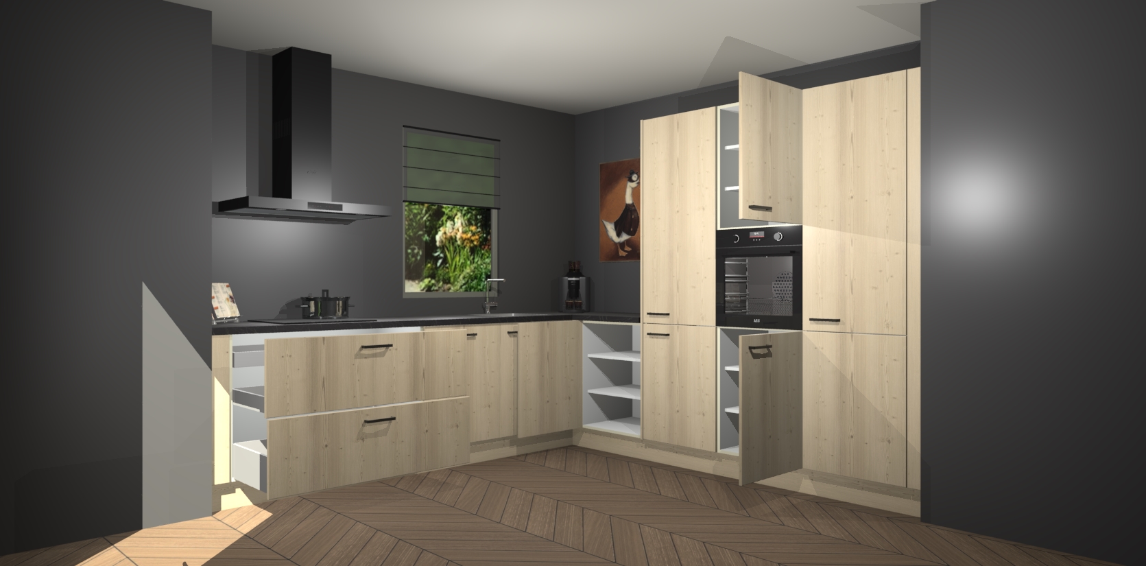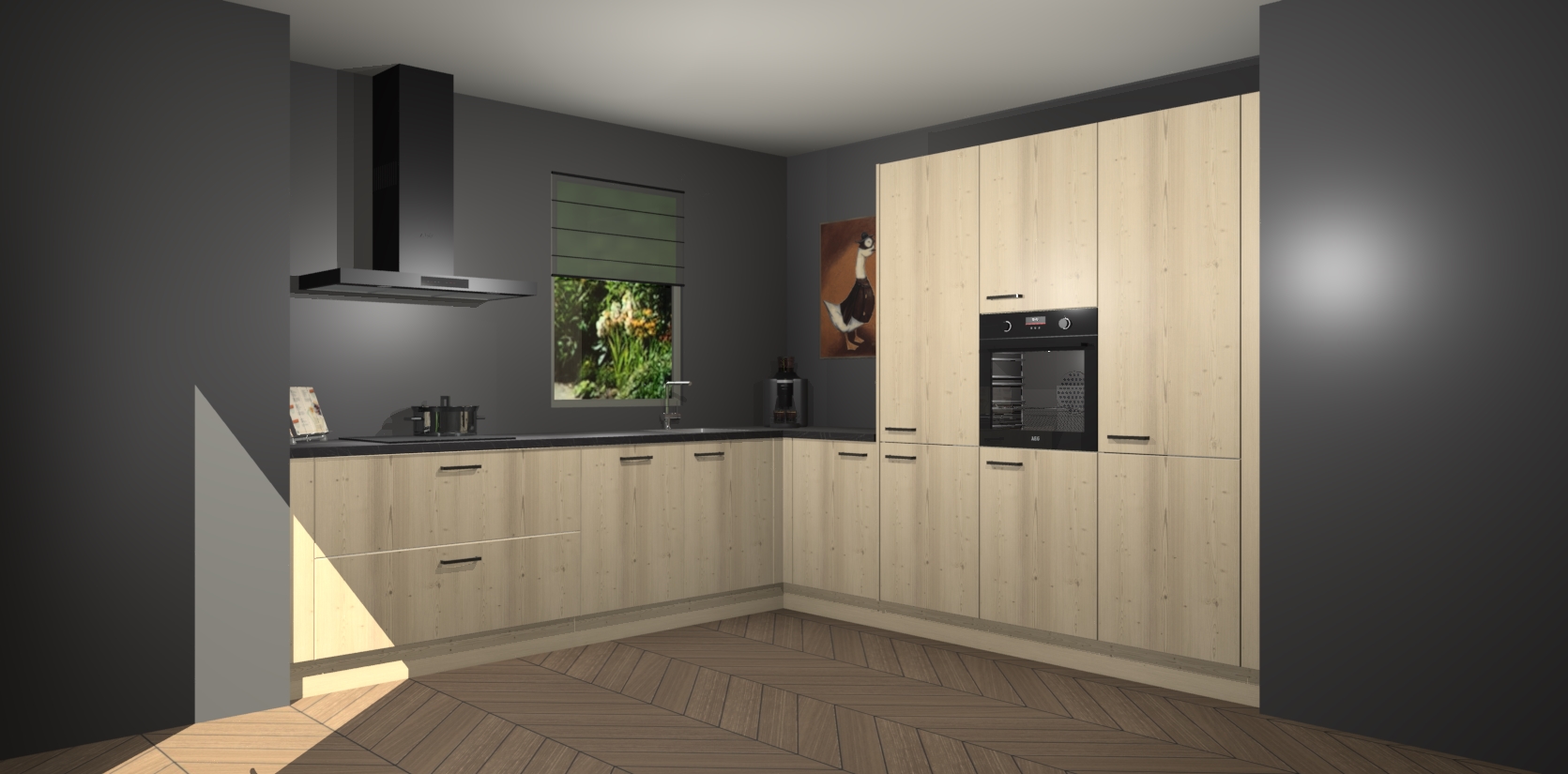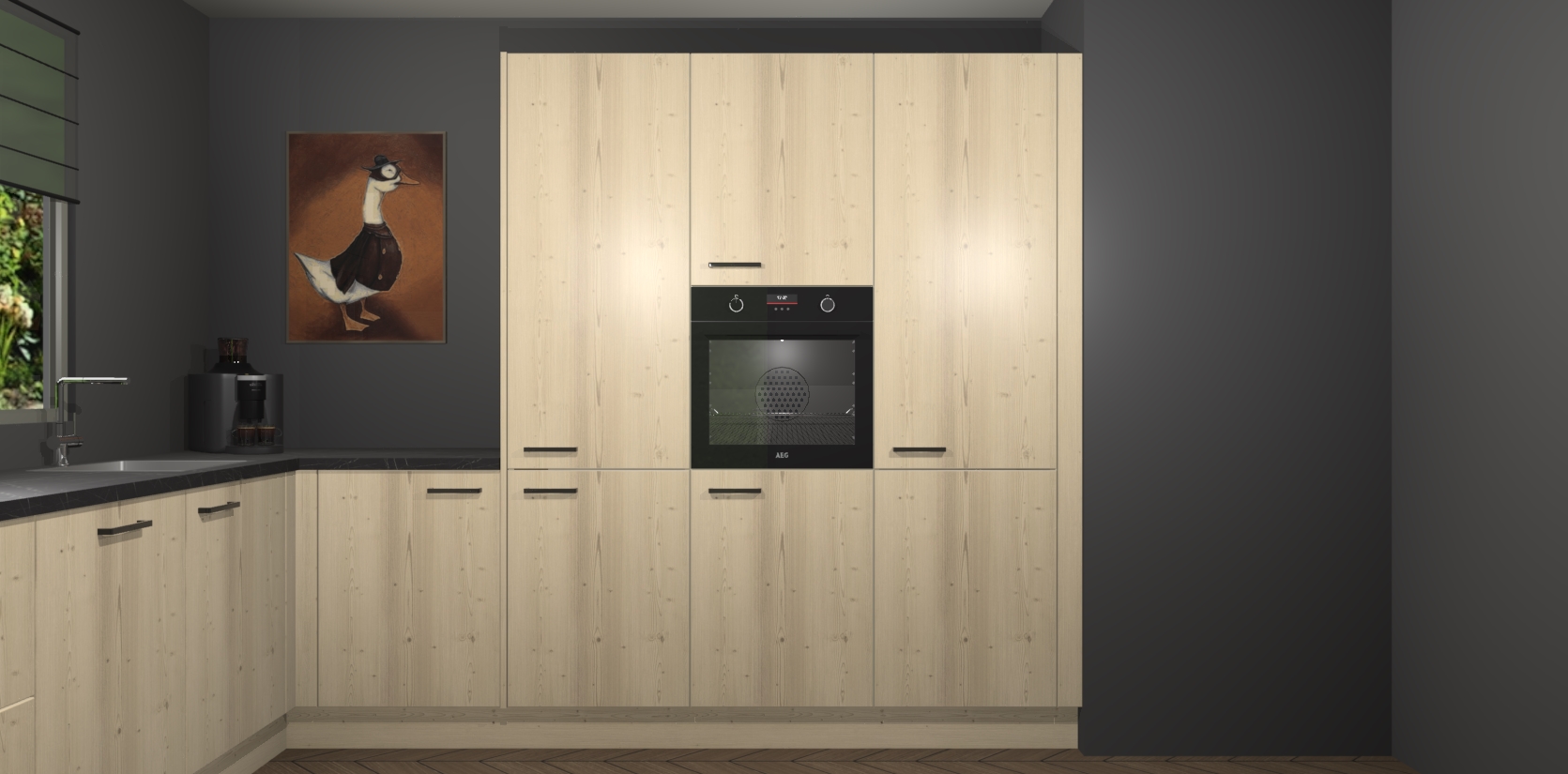 Welkom bij de Vuren keuken Laos. Deze prachtige keuken zal de komende jaren het middelpunt van de belangstelling in uw huis zijn. Uitgerust met vijf inbouwapparaten komt u nooit kookgereedschap tekort. Bovendien geeft de warme houtlook elke ruimte een uitnodigende en tijdloze uitstraling.