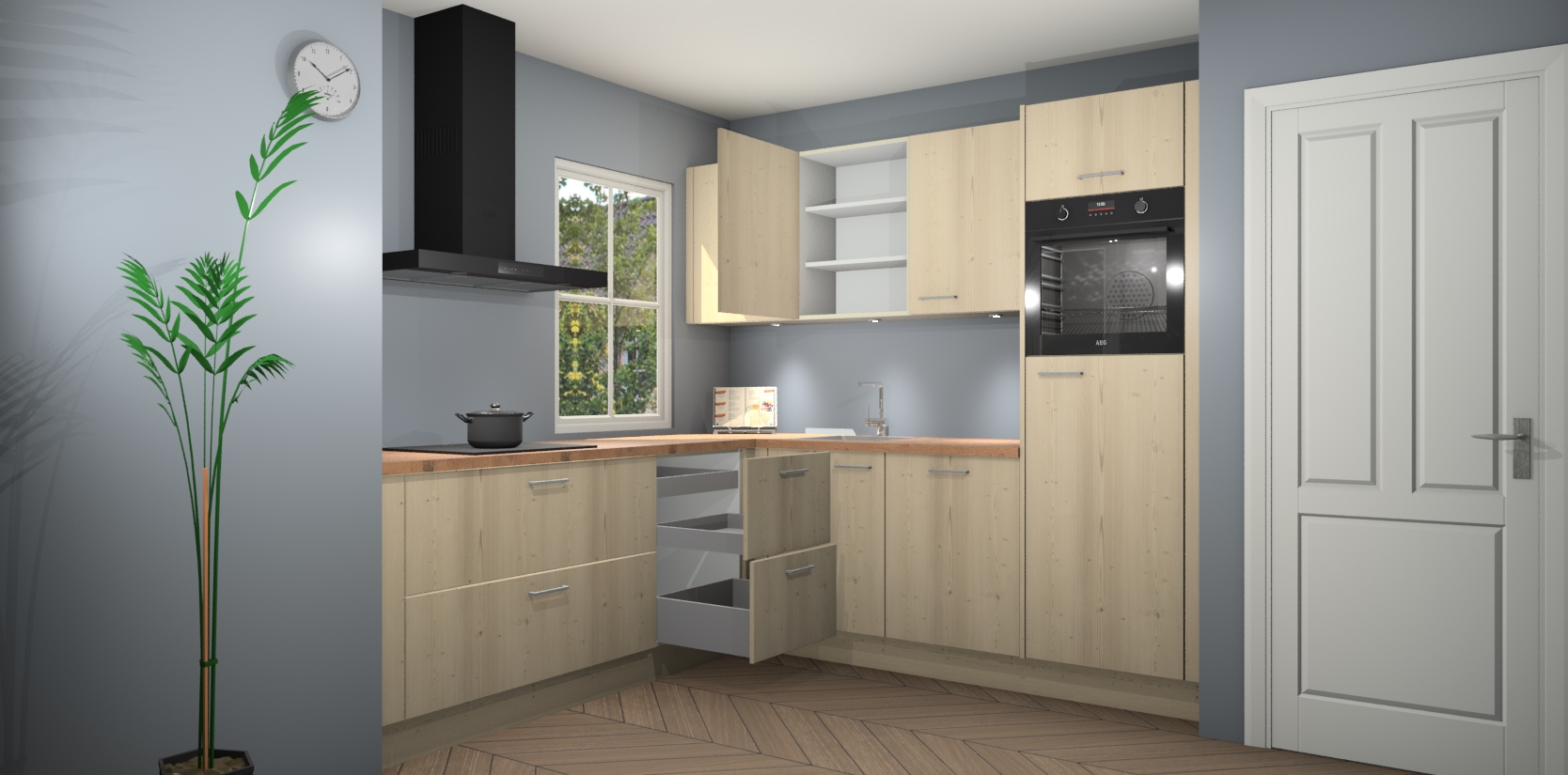 In deze box zijn alle kleuren verzameld van de deuren en werkbladen. Vraag de gratis kleurenbox aan en kijk thuis rustig verder!