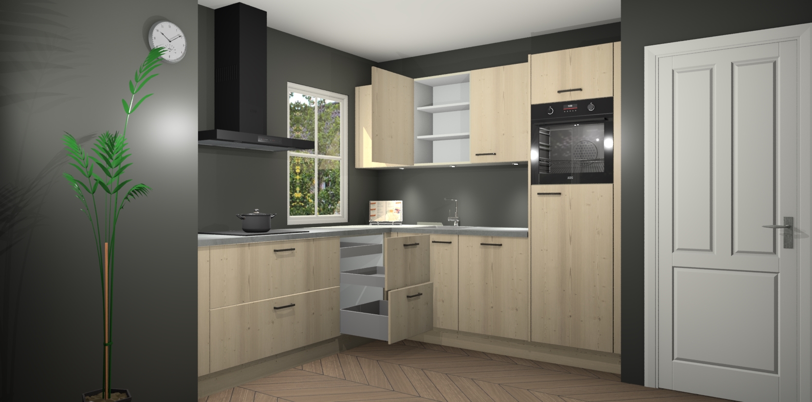 • Bij een hoekwerkblad zijn de hoeken in gevreesd en op maat gemaakt
