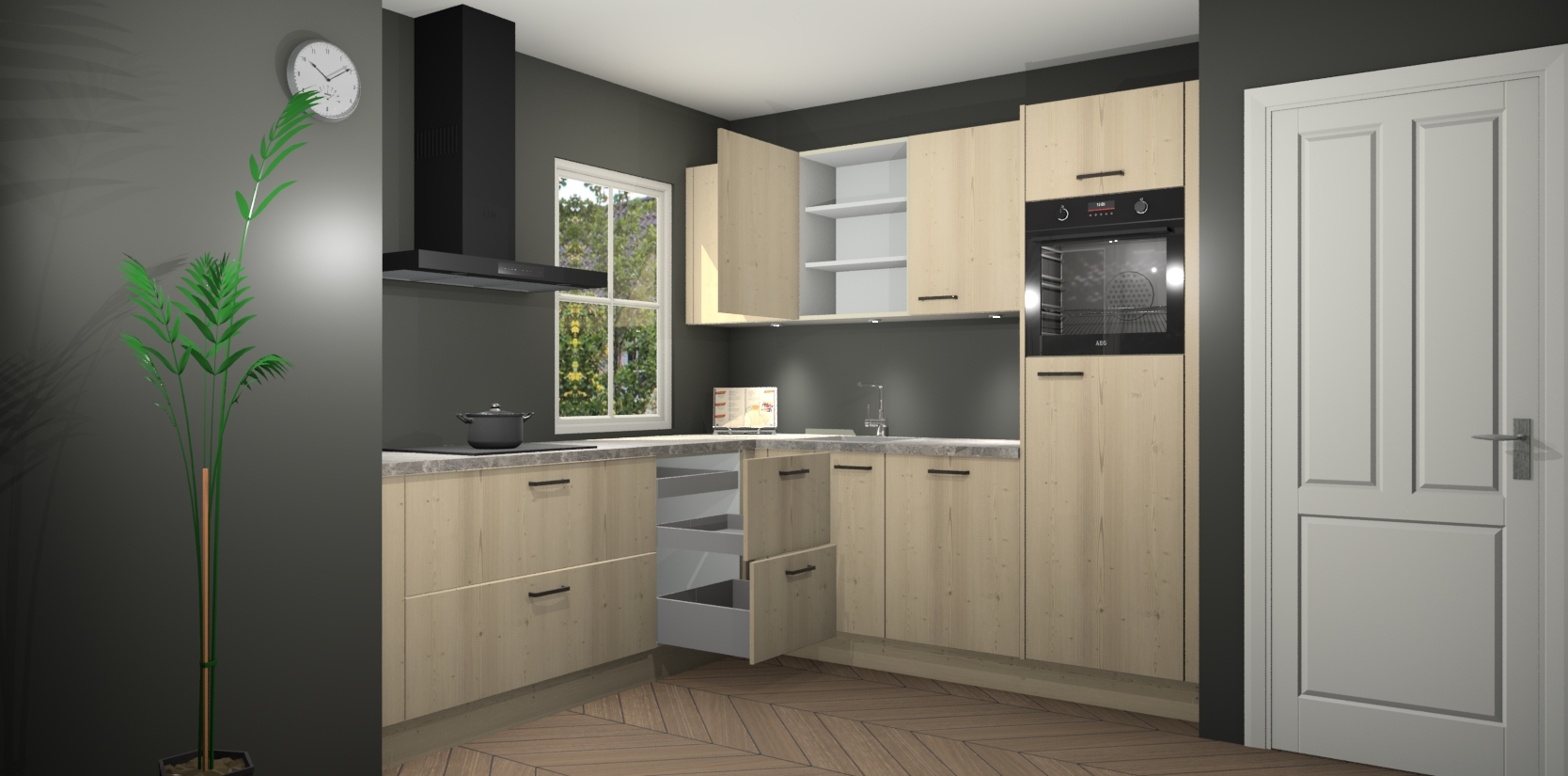 - Bij een hoekwerkblad zijn de hoeken in gevreesd en op maat gemaakt
