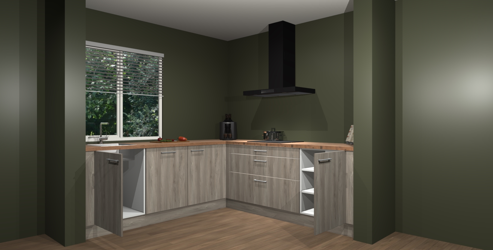 In deze box zijn alle kleuren verzameld van de deuren en werkbladen. Vraag de gratis kleurenbox aan en kijk thuis rustig verder!