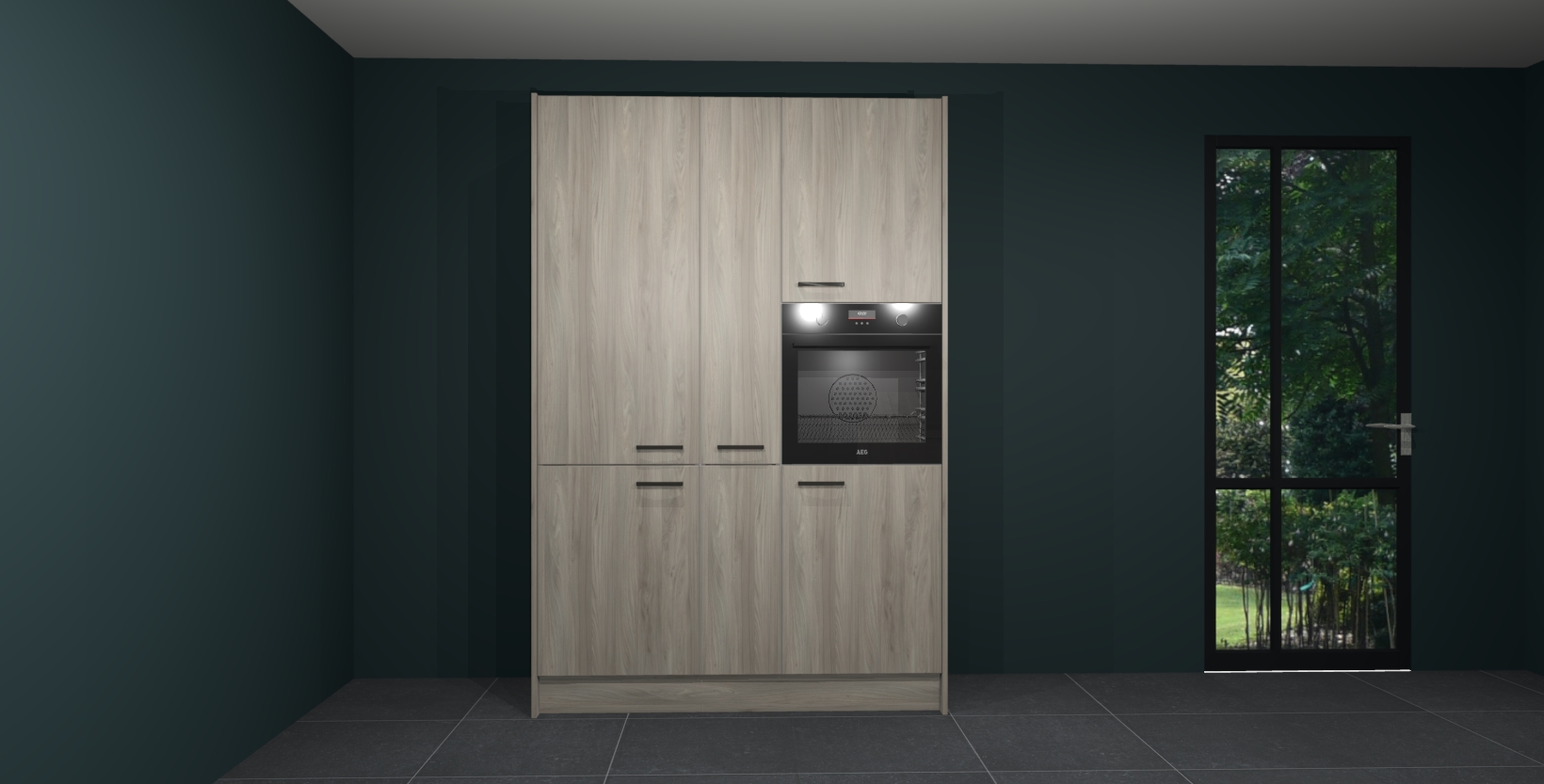 Met een modern, tijdloos design en ruime opslagruimte, zult u zich in no-time thuis voelen in uw nieuwe keuken. Uw leven wordt eenvoudiger met de soft-close deuren die voor het ultieme stille comfort zorgen - geen geluid dat u stoort terwijl u kookt. Ook is de keuken voorzien van 5 ingebouwde apparaten: een oven, inductie kookplaat, afzuigkap, vaatwasser en koelkast. Deze kunnen gemakkelijk na bestelling worden bijgewerkt naar AEG - waardoor uw luxe ervaring compleet is.