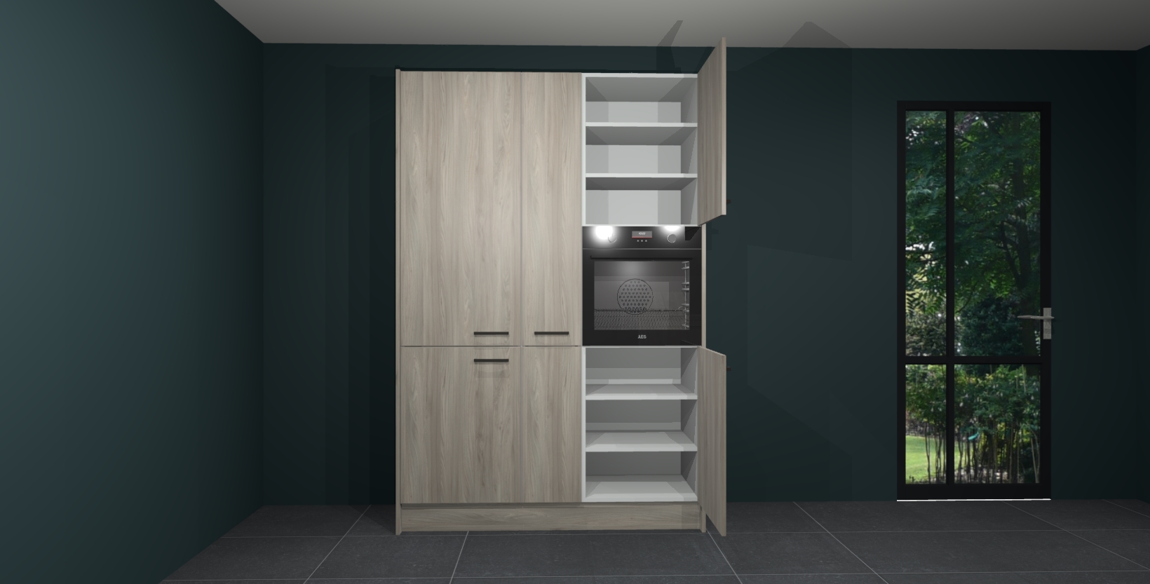 Met een modern, tijdloos design en ruime opslagruimte, zult u zich in no-time thuis voelen in uw nieuwe keuken. Uw leven wordt eenvoudiger met de soft-close deuren die voor het ultieme stille comfort zorgen - geen geluid dat u stoort terwijl u kookt. Ook is de keuken voorzien van 5 ingebouwde apparaten: een oven, inductie kookplaat, afzuigkap, vaatwasser en koelkast. Deze kunnen gemakkelijk na bestelling worden bijgewerkt naar AEG - waardoor uw luxe ervaring compleet is.