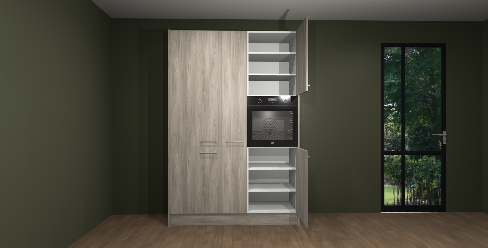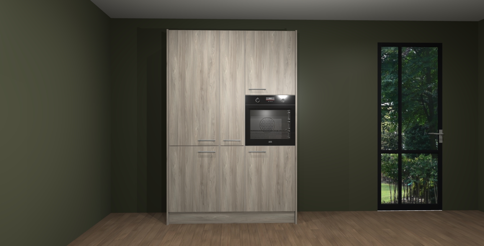 Met een modern, tijdloos design en ruime opslagruimte, zult u zich in no-time thuis voelen in uw nieuwe keuken. Uw leven wordt eenvoudiger met de soft-close deuren die voor het ultieme stille comfort zorgen - geen geluid dat u stoort terwijl u kookt. Ook is de keuken voorzien van 5 ingebouwde apparaten: een oven, inductie kookplaat, afzuigkap, vaatwasser en koelkast. Deze kunnen gemakkelijk na bestelling worden bijgewerkt naar AEG - waardoor uw luxe ervaring compleet is.