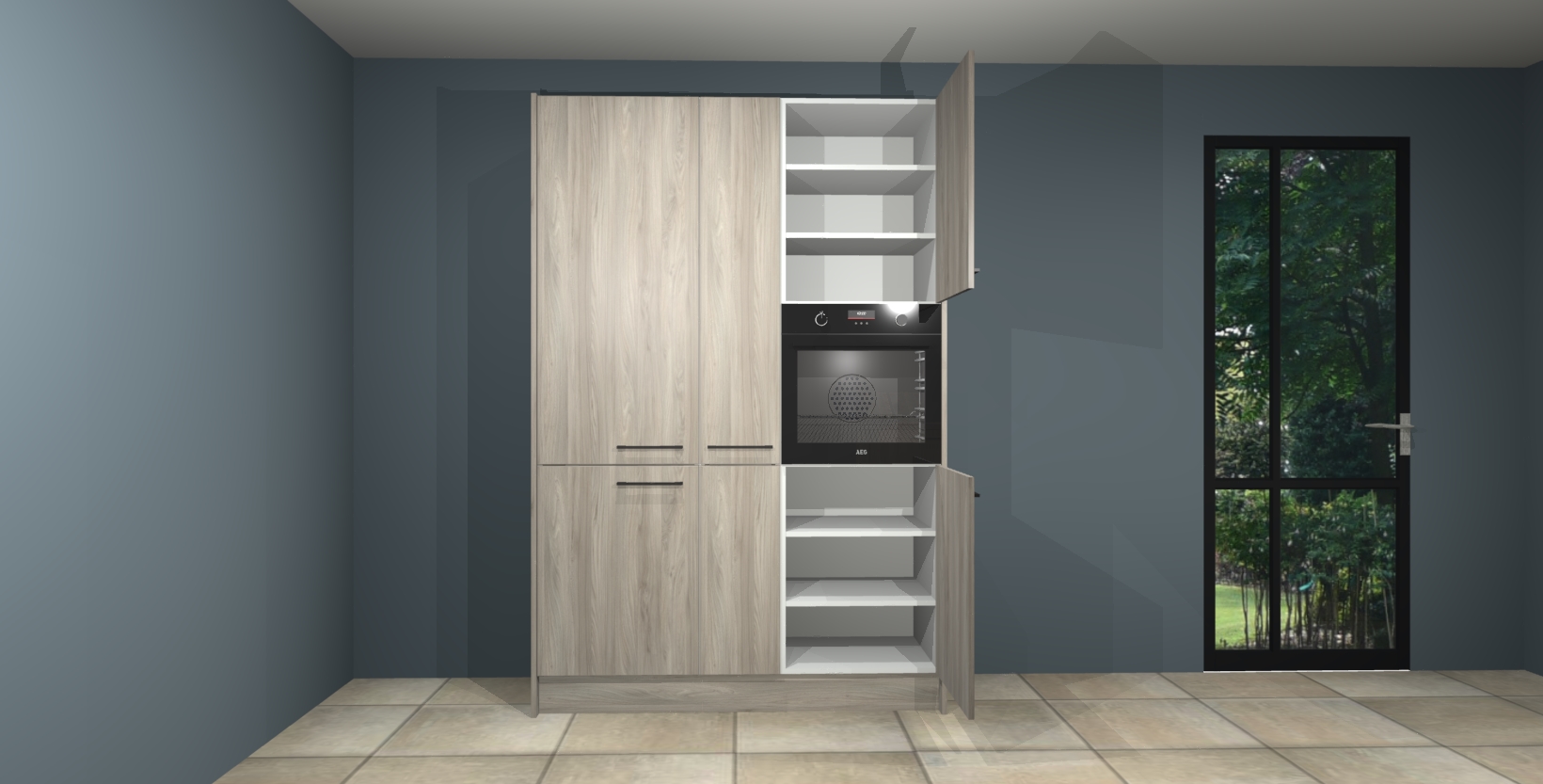 Met een modern, tijdloos design en ruime opslagruimte, zult u zich in no-time thuis voelen in uw nieuwe keuken. Uw leven wordt eenvoudiger met de soft-close deuren die voor het ultieme stille comfort zorgen - geen geluid dat u stoort terwijl u kookt. Ook is de keuken voorzien van 5 ingebouwde apparaten: een oven, inductie kookplaat, afzuigkap, vaatwasser en koelkast. Deze kunnen gemakkelijk na bestelling worden bijgewerkt naar AEG - waardoor uw luxe ervaring compleet is.