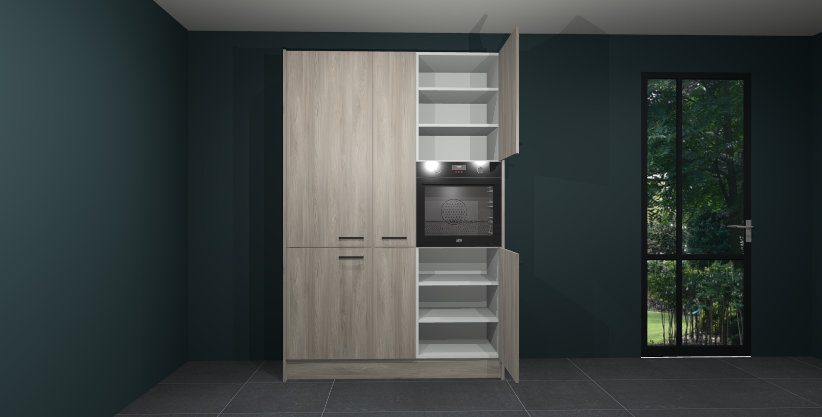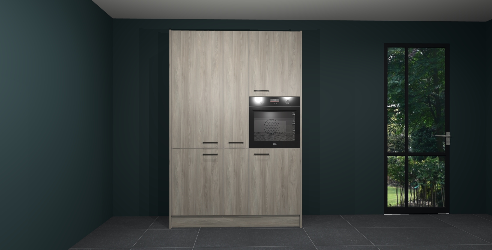 Met een modern, tijdloos design en ruime opslagruimte, zult u zich in no-time thuis voelen in uw nieuwe keuken. Uw leven wordt eenvoudiger met de soft-close deuren die voor het ultieme stille comfort zorgen - geen geluid dat u stoort terwijl u kookt. Ook is de keuken voorzien van 5 ingebouwde apparaten: een oven, inductie kookplaat, afzuigkap, vaatwasser en koelkast. Deze kunnen gemakkelijk na bestelling worden bijgewerkt naar AEG - waardoor uw luxe ervaring compleet is.