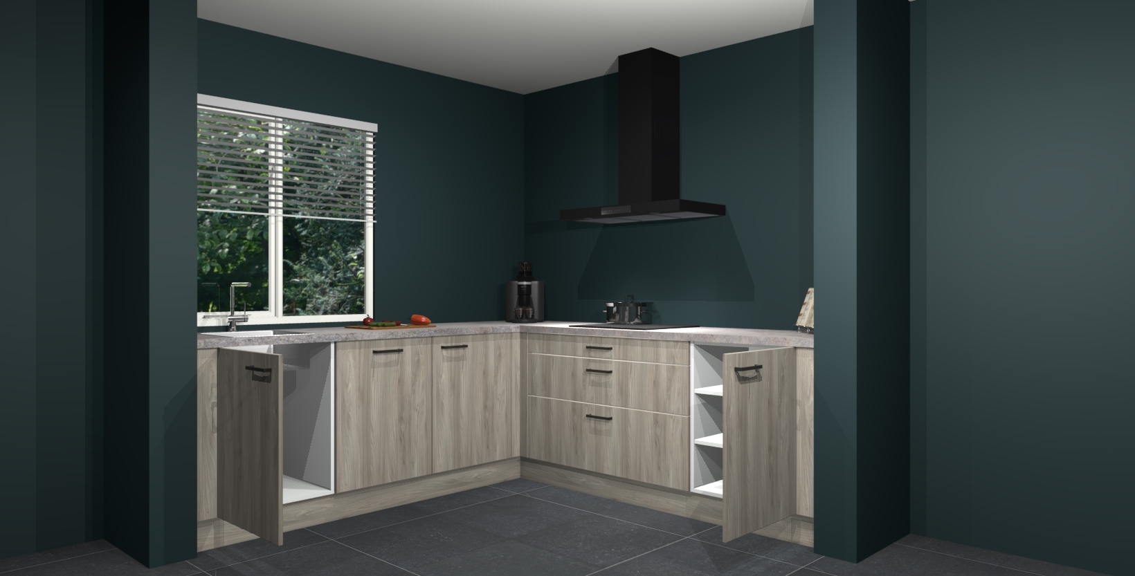 In deze box zijn alle kleuren verzameld van de deuren en werkbladen. Vraag de gratis kleurenbox aan en kijk thuis rustig verder!