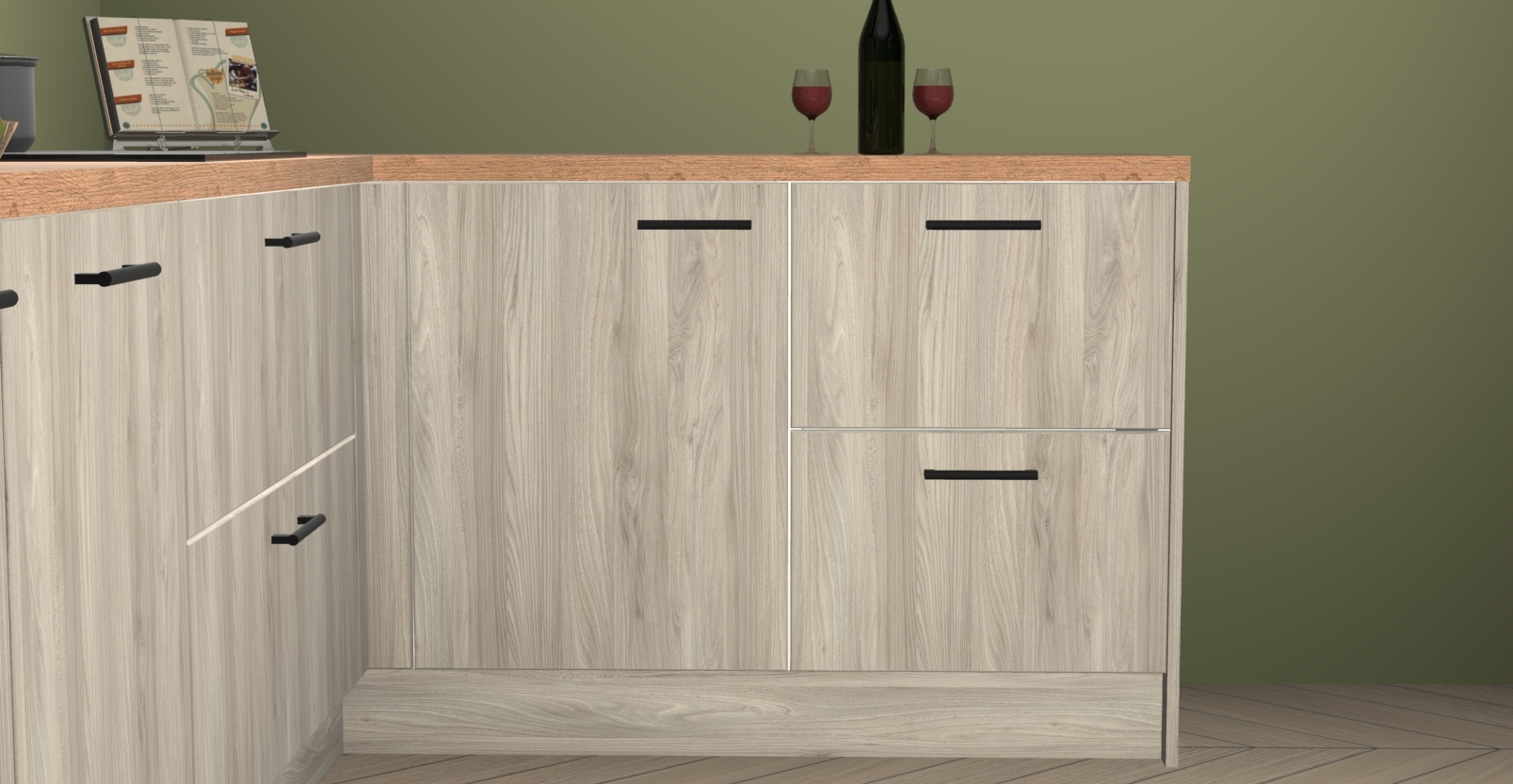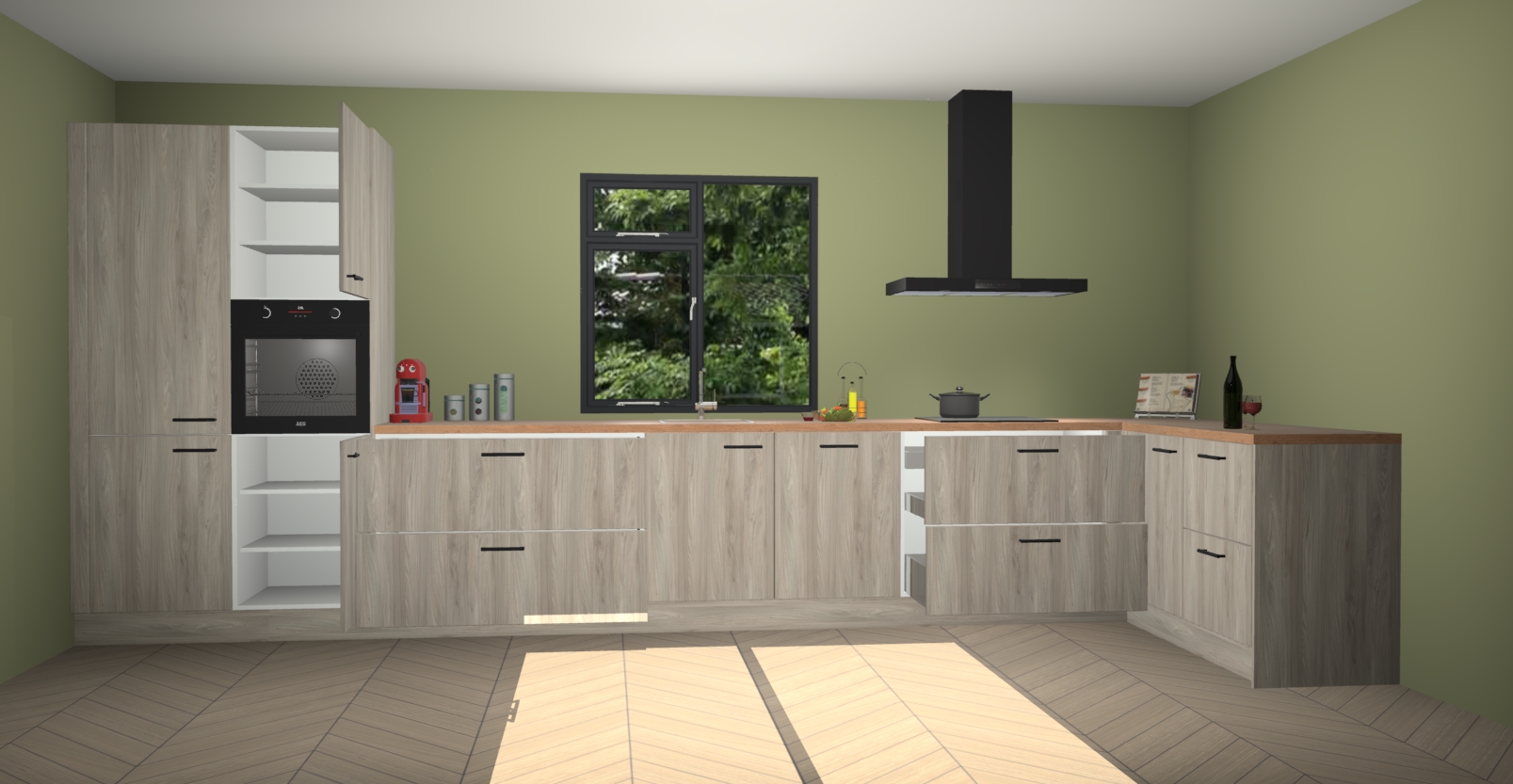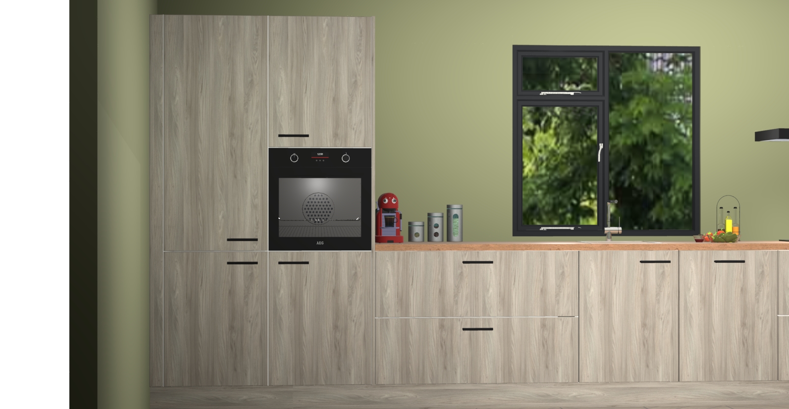 De Vuren keuken Lille wordt geleverd met vijf inbouwapparaten - een oven, inductiekookplaat, afzuigkap, vaatwasser en koelkast. Maar dat is nog niet alles! Na bestelling kunnen deze apparaten eenvoudig worden geüpgraded naar premium AEG-apparatuur. Bovendien is er zelfs de optie om de oven te vervangen door een combimagnetron of uw inductiekookplaat te vervangen door een kookplaat met geïntegreerde afzuiging.