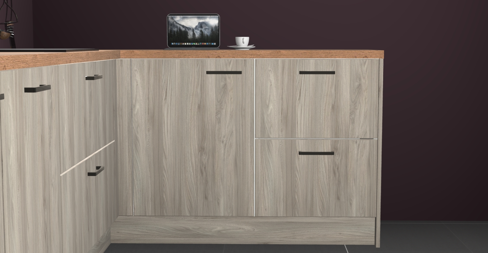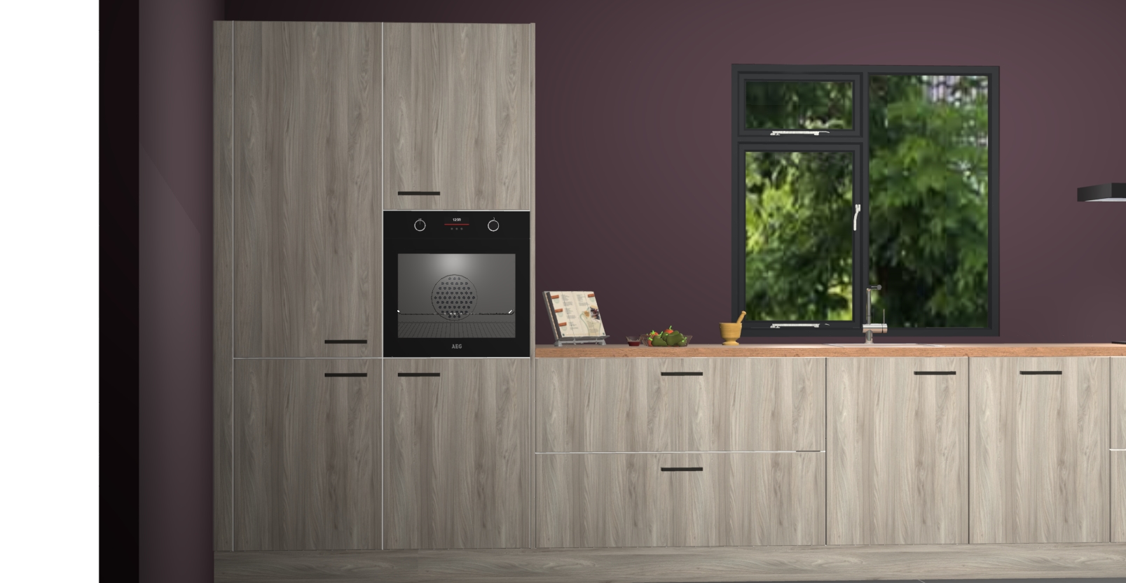 De Vuren keuken Lille wordt geleverd met vijf inbouwapparaten - een oven, inductiekookplaat, afzuigkap, vaatwasser en koelkast. Maar dat is nog niet alles! Na bestelling kunnen deze apparaten eenvoudig worden geüpgraded naar premium AEG-apparatuur. Bovendien is er zelfs de optie om de oven te vervangen door een combimagnetron of uw inductiekookplaat te vervangen door een kookplaat met geïntegreerde afzuiging.