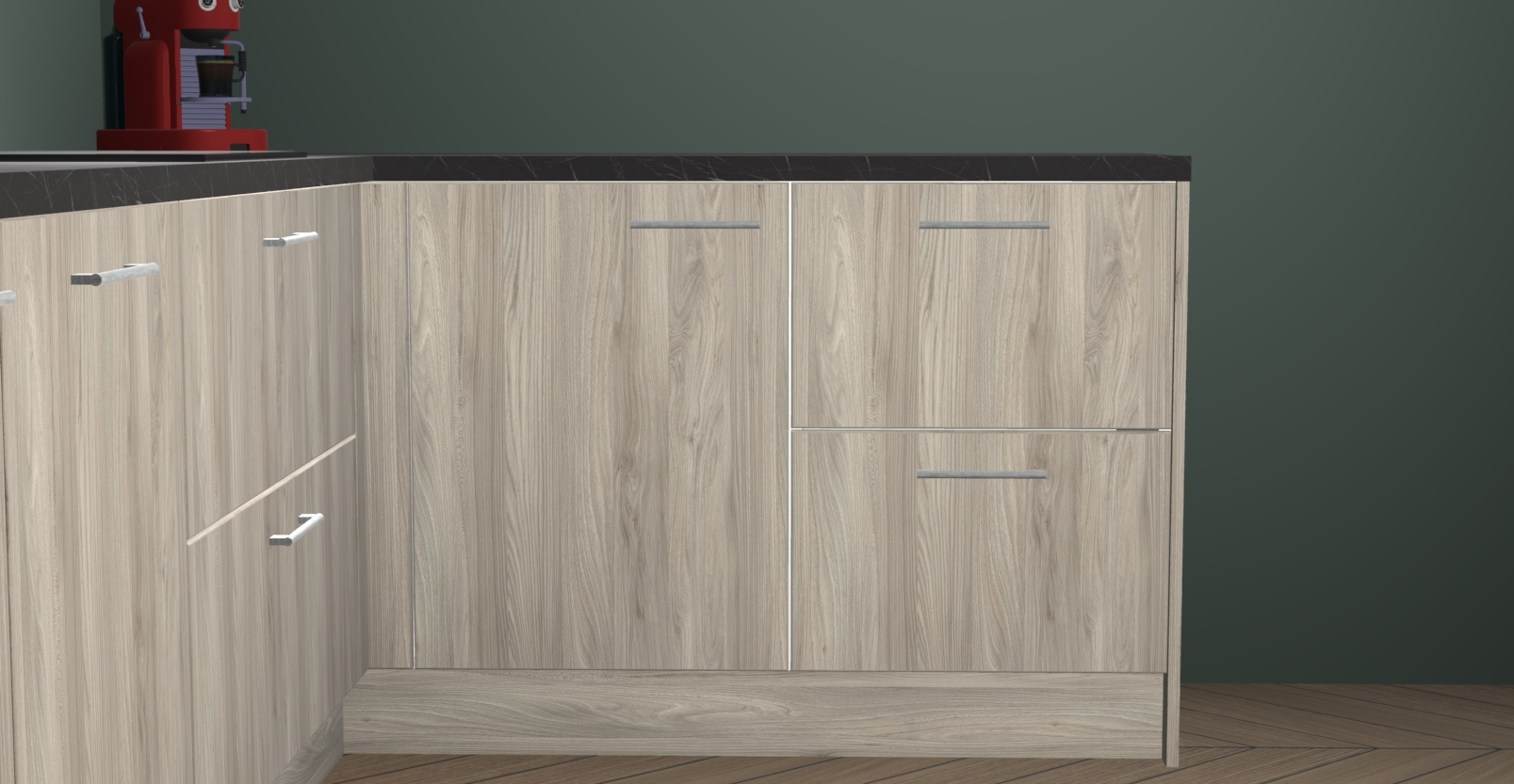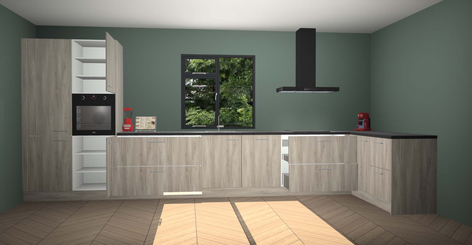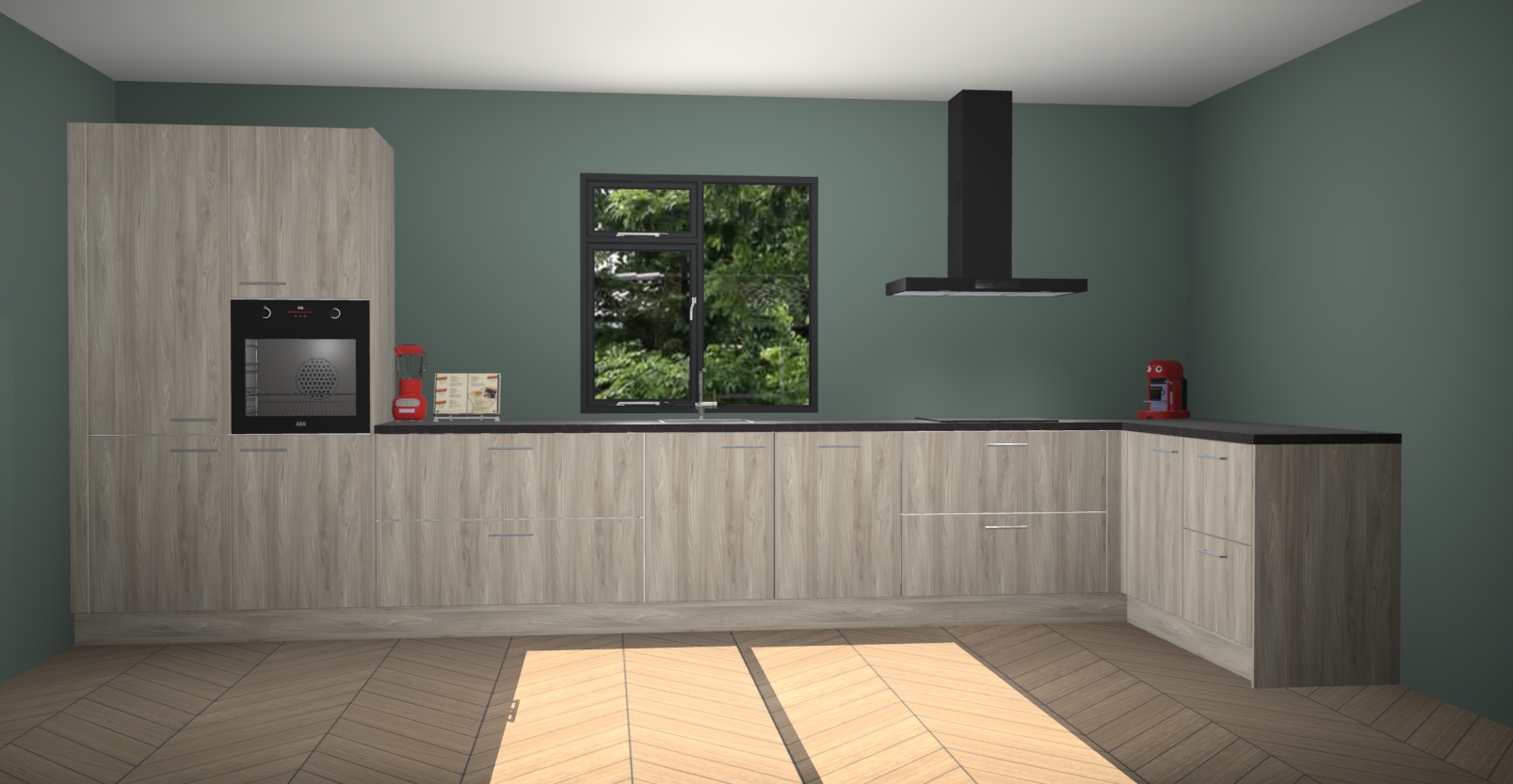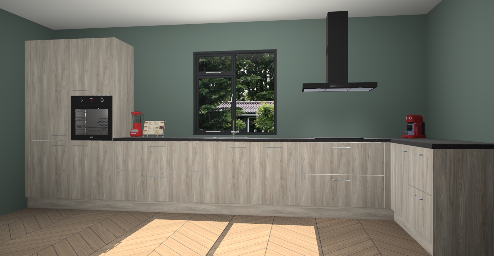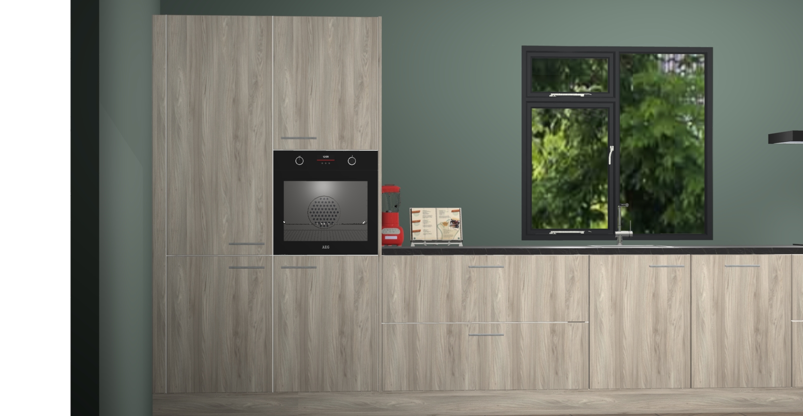De Vuren keuken Lille wordt geleverd met vijf inbouwapparaten - een oven, inductiekookplaat, afzuigkap, vaatwasser en koelkast. Maar dat is nog niet alles! Na bestelling kunnen deze apparaten eenvoudig worden geüpgraded naar premium AEG-apparatuur. Bovendien is er zelfs de optie om de oven te vervangen door een combimagnetron of uw inductiekookplaat te vervangen door een kookplaat met geïntegreerde afzuiging.